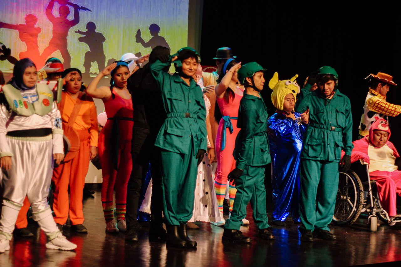 En el escenario, 45 participantes ofrecieron una emotiva puesta en escena que combinó danza, música, títeres y escenografía artesanal elaborada con piñatas y materiales reciclados. Inspirados en películas como El Rey León y Tinkerbell, los jóvenes mostraron sus habilidades y creatividad ante un público conmovido y entusiasta.
