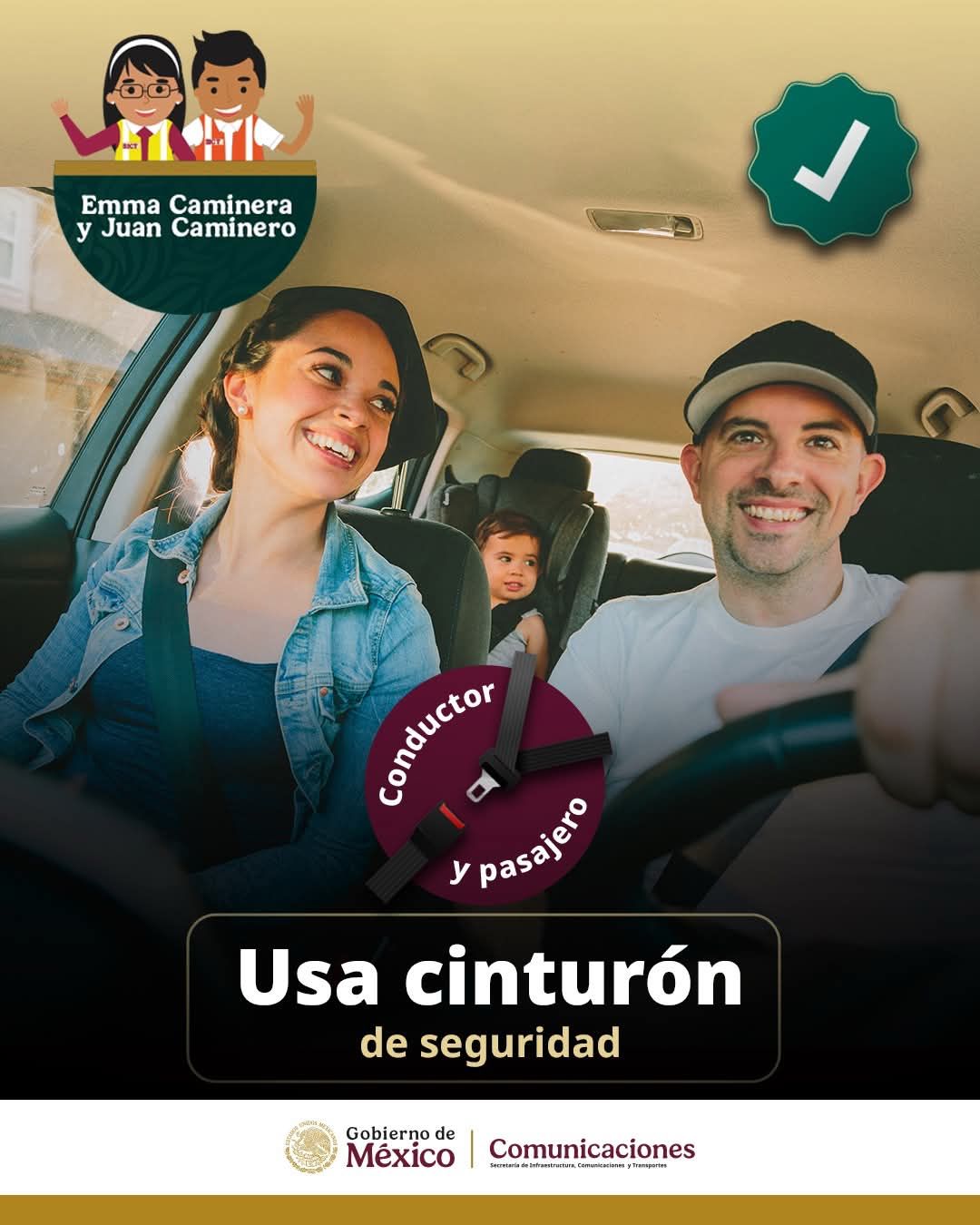 Usar el cinturón de seguridad en todo momento y asegurarse de que menores viajen en la parte trasera con sillas especiales.