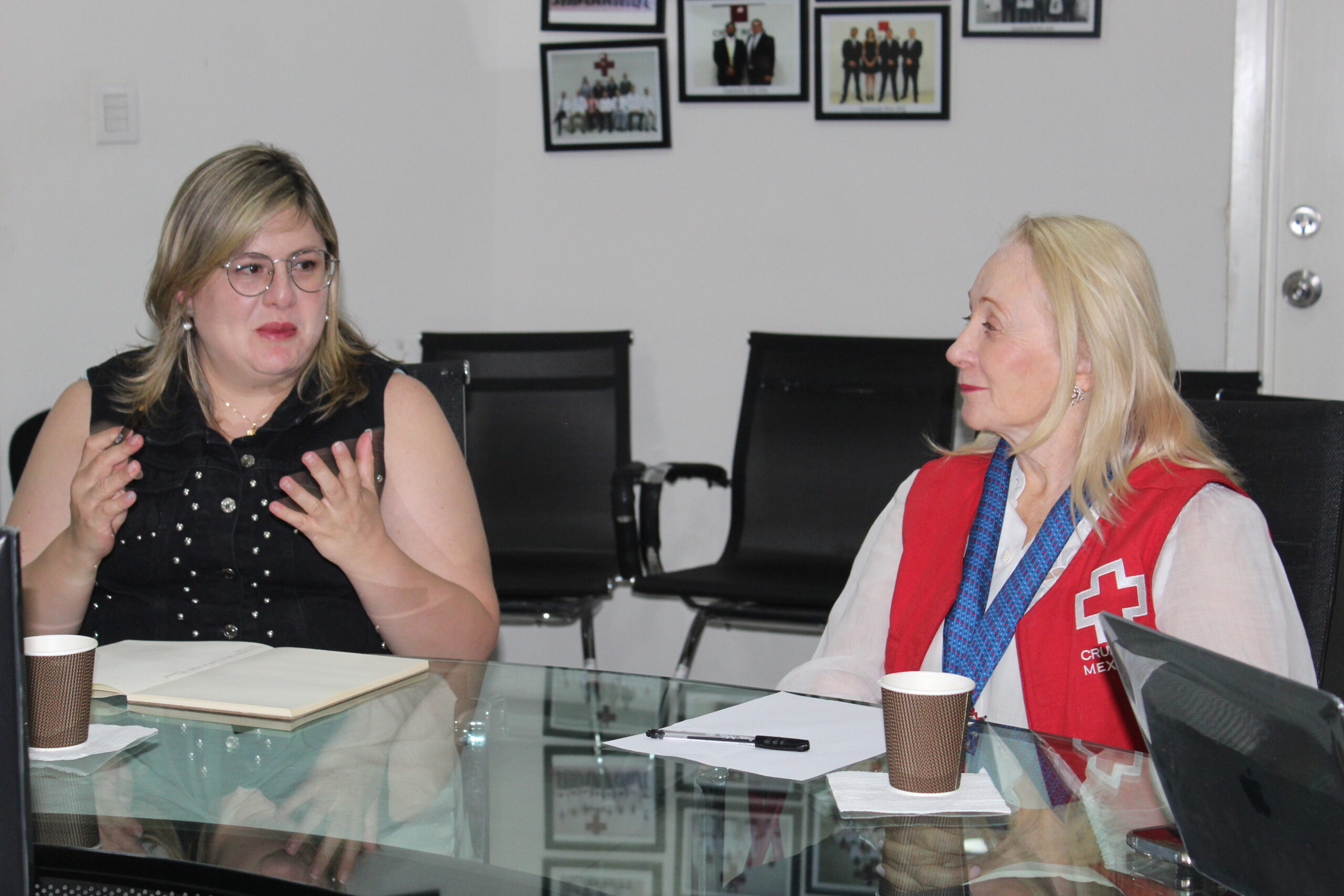 Durante la reunión de trabajo, Byrne de Rodríguez expuso las diversas áreas de acción de la Cruz Roja, como capacitación, juventud, socorros, desastres y prevención, cuyo objetivo es fomentar la protección a la vida, el cuidado de la salud y la asistencia social sin distinción de nacionalidad.