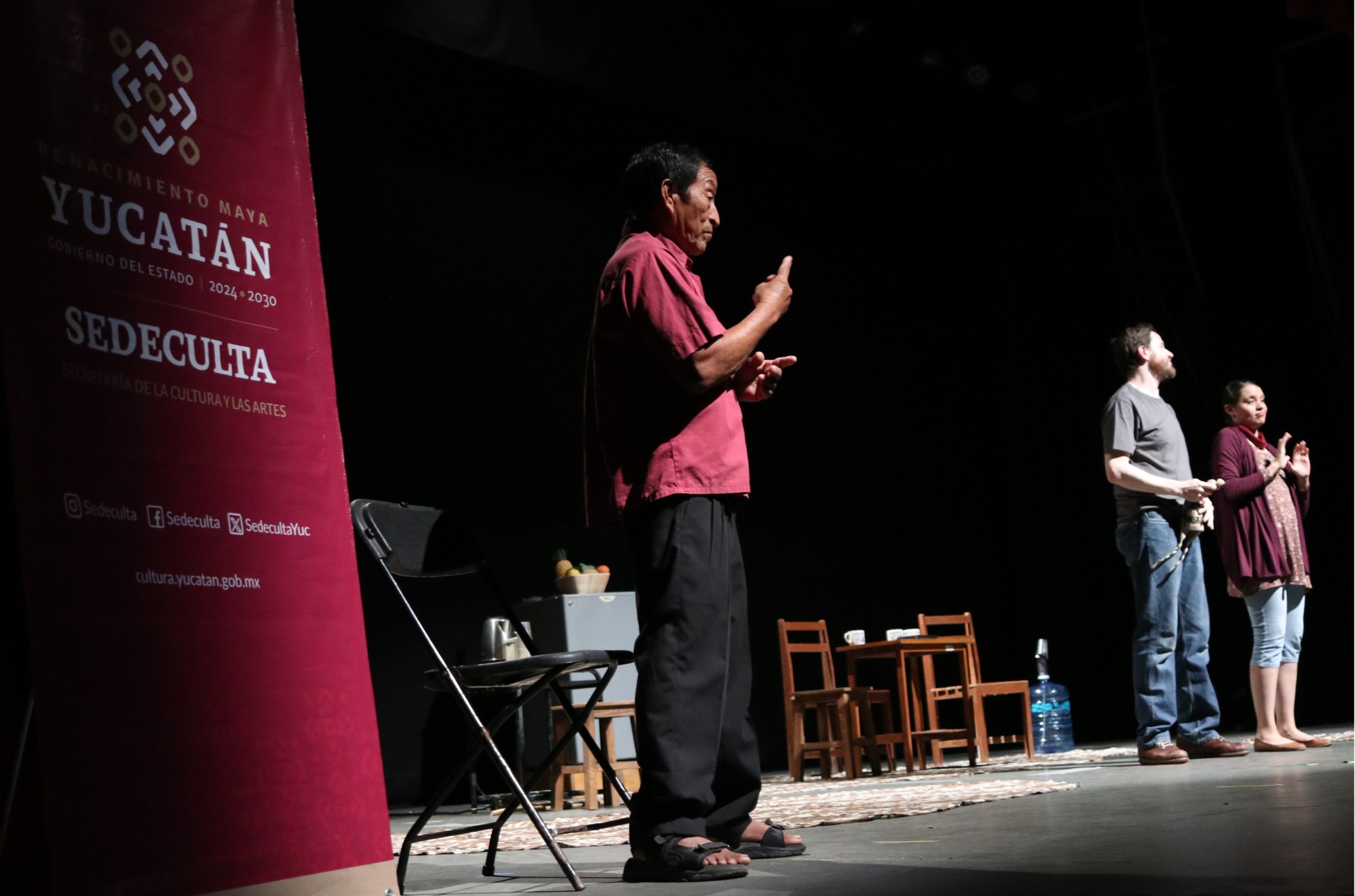 La inclusión artística tomó el escenario del Teatro Daniel Ayala con la presentación gratuita de la obra “¡¿Quién te entiende?!”, de la Compañía Seña y Verbo Teatro para Sordos, como parte de las Jornadas de Arte e Inclusión 2025 organizadas por la Sedeculta y el Iipedey. La puesta en escena integró interpretación en Lengua de Señas Mexicana (LSM) y en señas mayas yucatecas, logrando una experiencia accesible y emotiva para personas sordas y oyentes.