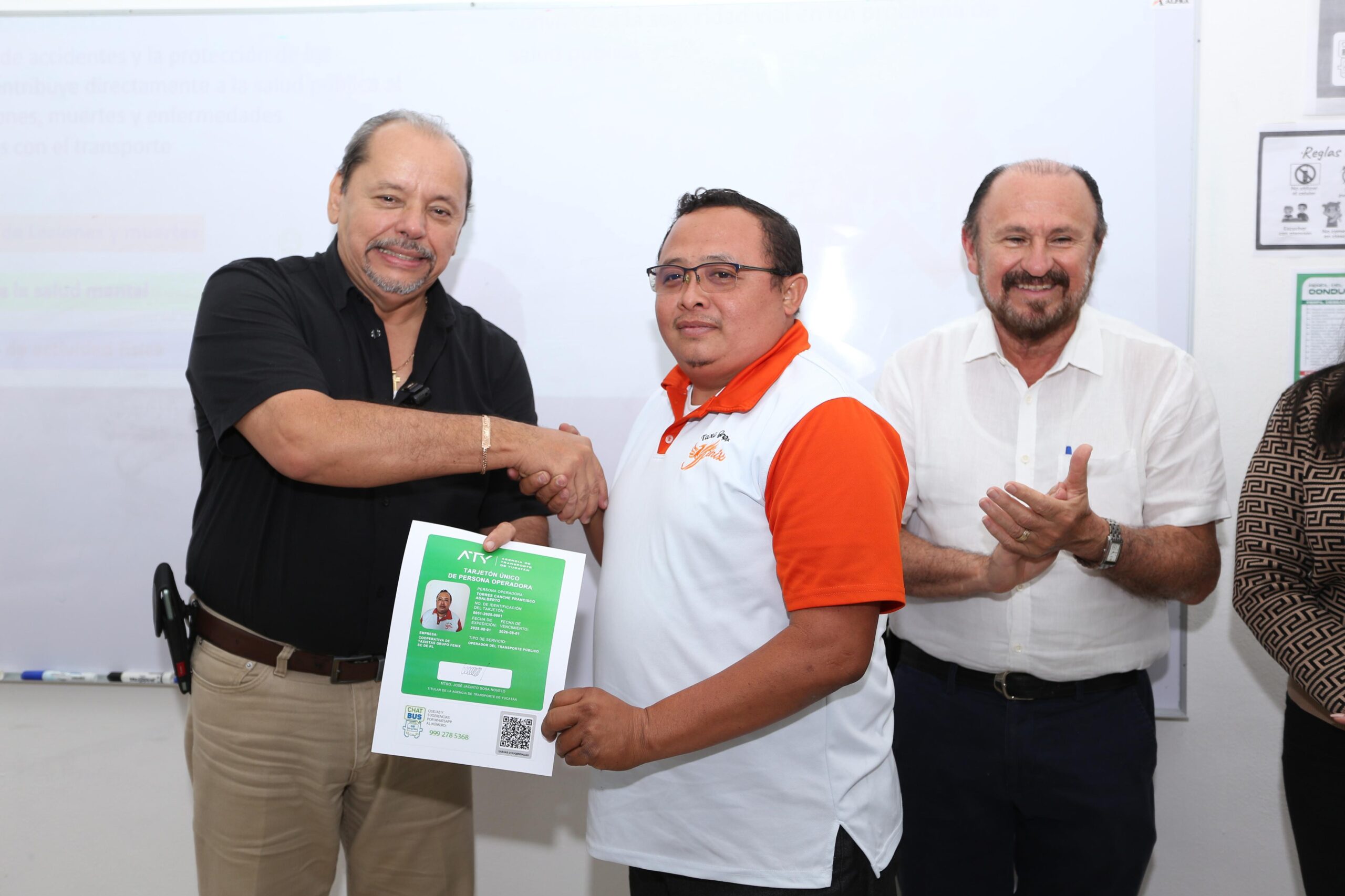 El titular de la ATY, Jacinto Sosa Novelo, encabezó la entrega de tarjetones y constancias a las y los participantes, quienes ahora forman parte del Registro Estatal de Personas Operadoras (REPO).
