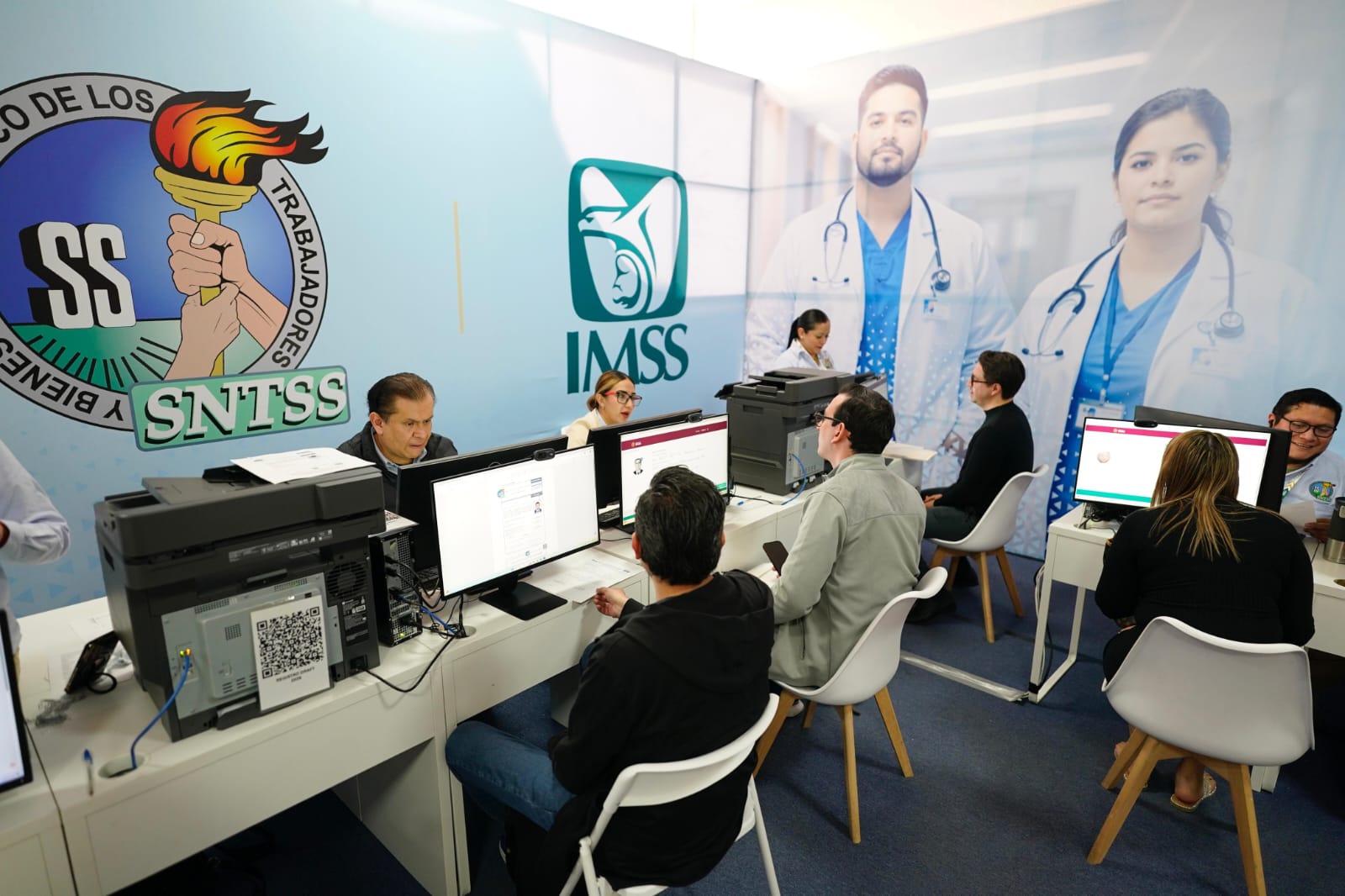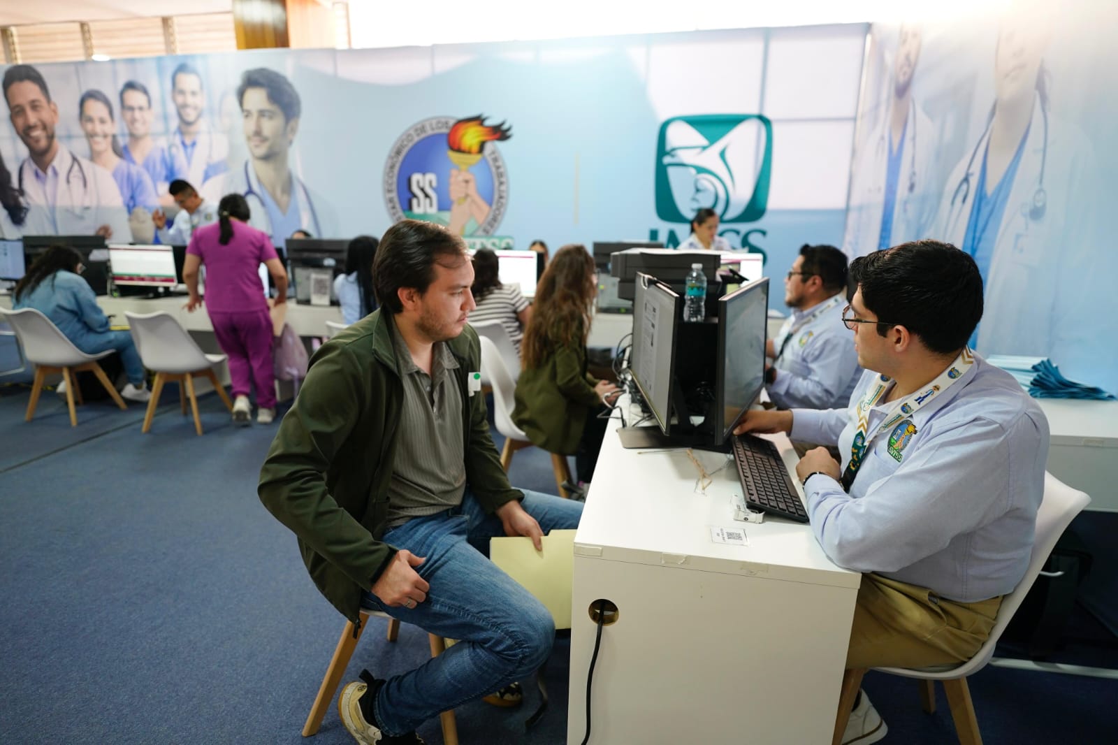 Durante la jornada, el Director General del IMSS, Zoé Robledo, y el Secretario de Salud, David Kershenobich Stalkinowitz, realizaron un recorrido por el área de registro y los módulos de las 35 representaciones estatales del Instituto, donde se lleva a cabo el proceso de contratación del personal médico especialista.