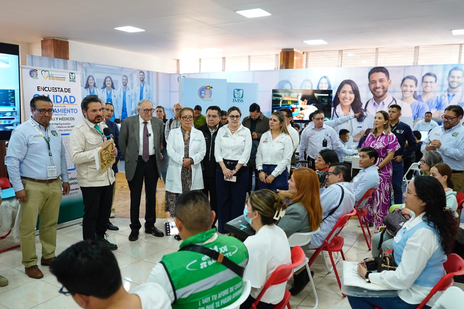 En la jornada de reclutamiento también participan directores normativos del IMSS, titulares de las representaciones estatales y directores de Unidades Médicas de Alta Especialidad (UMAE), entre ellos la directora de la UMAE Hospital de Traumatología, Ortopedia y Rehabilitación Física “Dr. Victorio de la Fuente Narváez”, Fryda Medina Rodríguez.