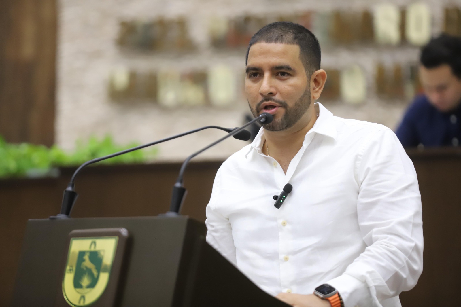 Mérida, Yucatán, 28 de agosto de 2025. — Javier Osante Solís, coordinador de la bancada naranja en el Congreso de Yucatán, pidió al Presidente del Senado, Gerardo Fernández Noroña, emitir la declaratoria de constitucionalidad de la reforma al artículo 123 de la Constitución, que establece un salario mínimo superior a la inflación para trabajadores públicos esenciales.