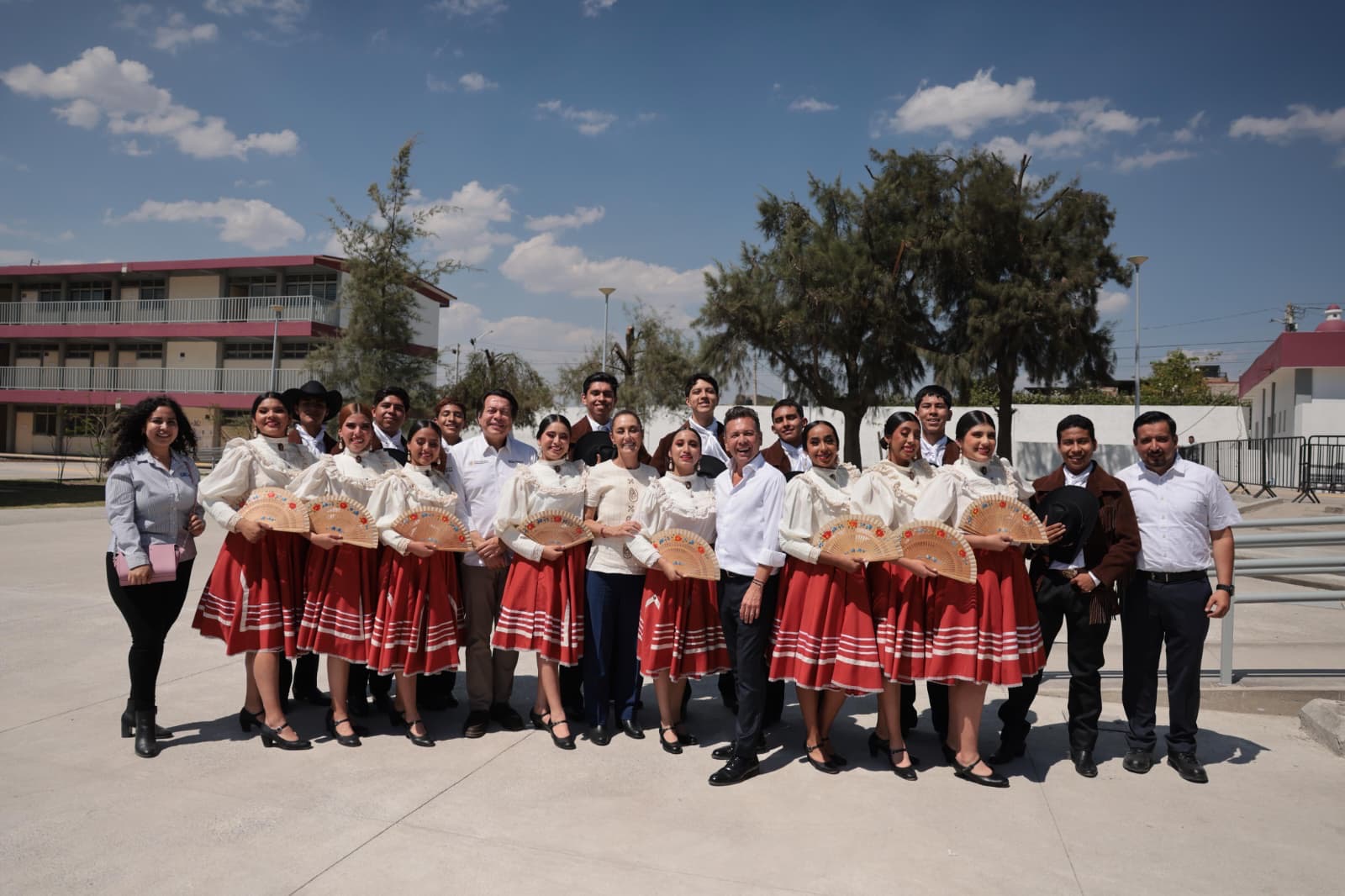 Durante la ceremonia, la alumna Alejandra Esperanza López Rodríguez, en representación de la comunidad estudiantil, agradeció a la Presidenta de México por la construcción de la nueva preparatoria, señalando que permitirá a las y los jóvenes estudiar y convivir en un entorno de paz y aprendizaje.