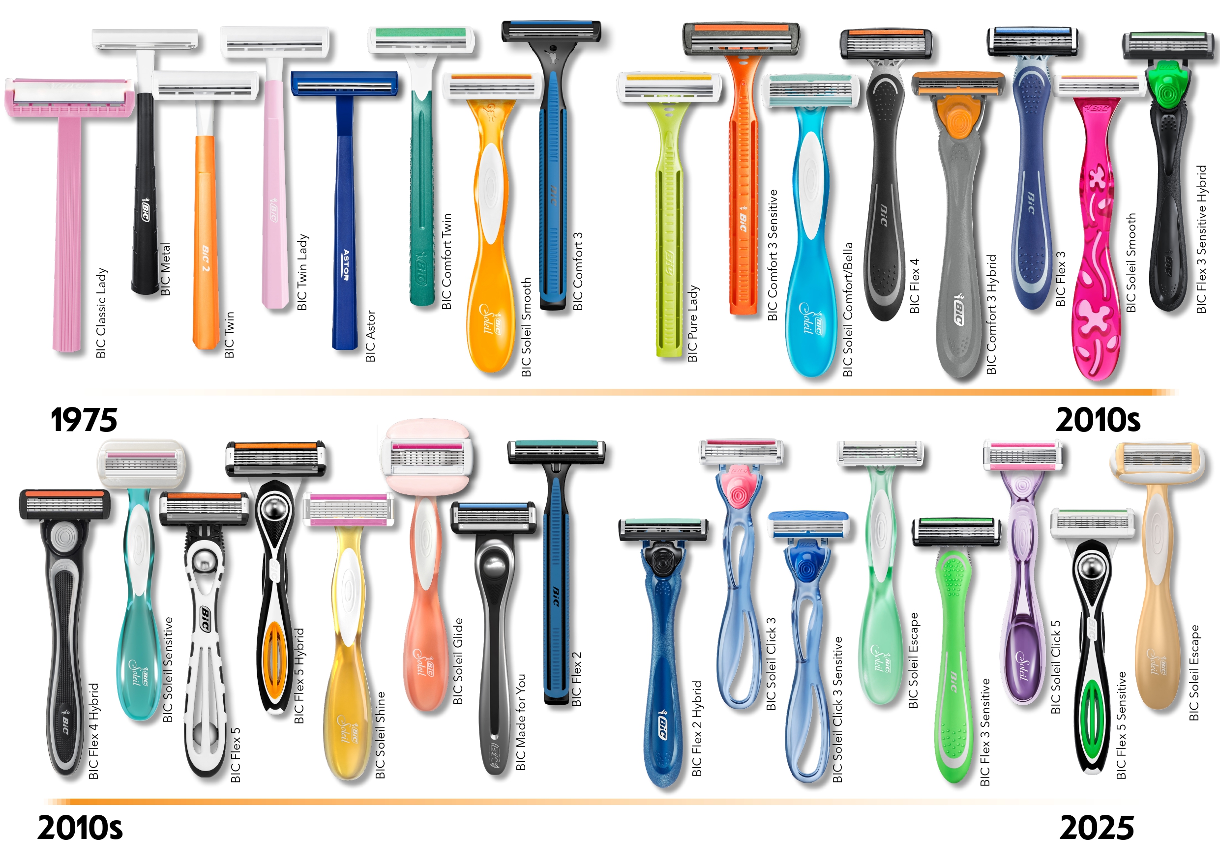 Entre sus innovaciones destacan los modelos BIC Flex 5, BIC Twin Lady/Silky Touch y Soleil Shave & Trim, diseñados para diferentes estilos y necesidades, con tecnología de precisión y elementos que cuidan la piel.