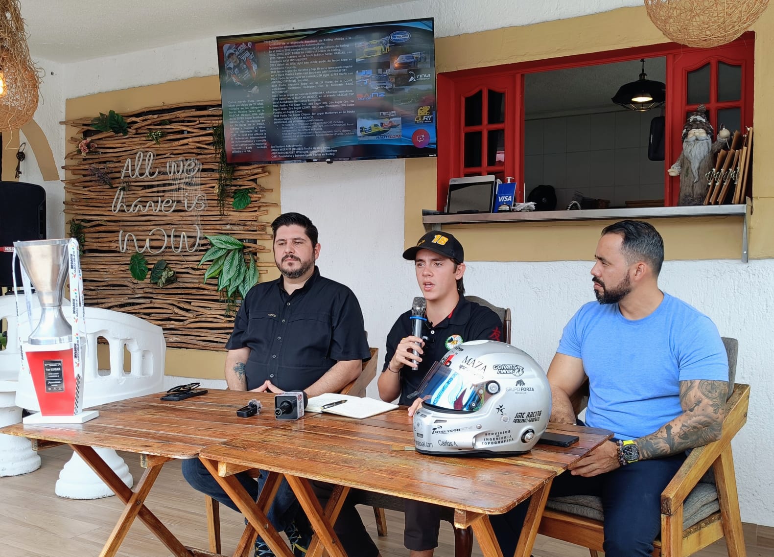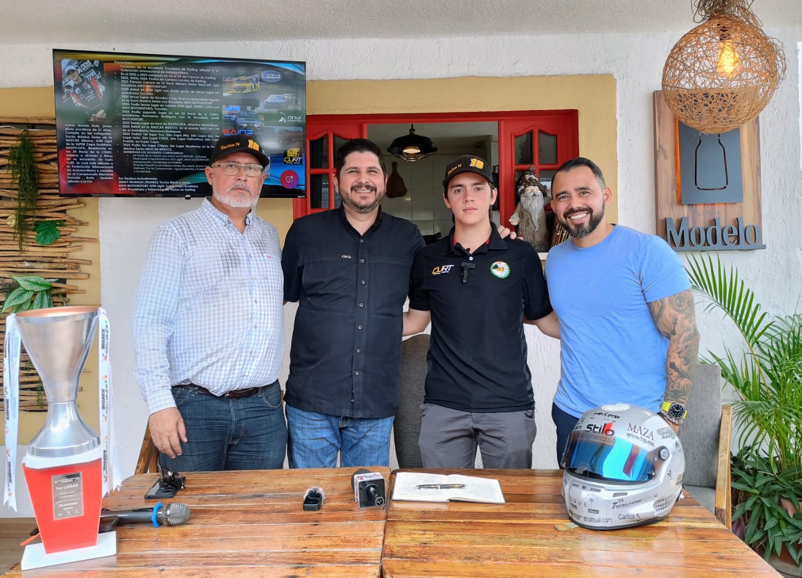 Acompañado de Iván Herrera Rosiles, subdirector de Deportes del Ayuntamiento de Mérida, Novelo presentó los detalles de la recta final de la temporada en la que participa en la ‘Súper Copa Roshfrans’, en la categoría GTM Light con el equipo ANVI Motorsport, y en la ‘Trucks México Series’, con la escudería de Jimmy Morales, manteniéndose con sólidas posibilidades de conquistar el título nacional.
