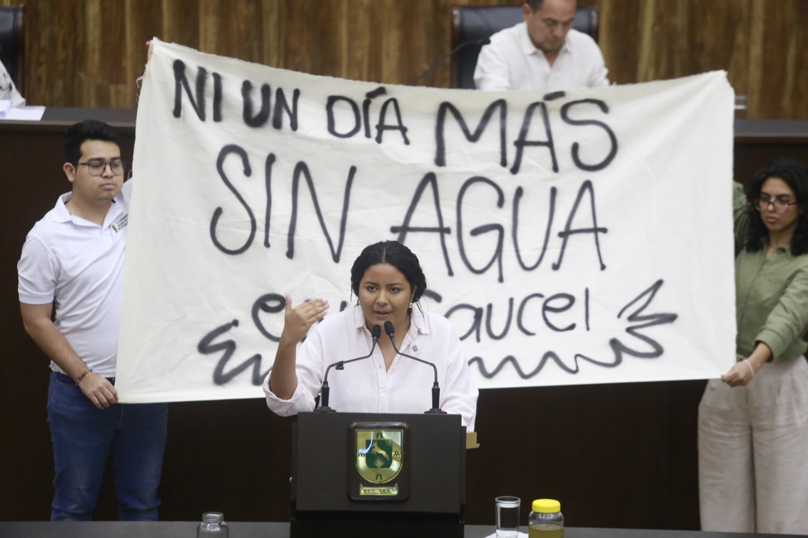 Mérida, Yucatán, 11 de marzo de 2026.– La Diputada Larissa Acosta Escalante exigió al Gobierno del Estado atender de manera urgente el desabasto de agua potable que afecta a habitantes de Ciudad Caucel, al señalar que mientras en muchas viviendas falta el servicio, en diversas calles persisten fugas que provocan desperdicio del líquido.