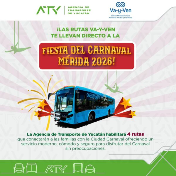 Poradmin12 febrero, 2026Mérida, Yucatán, 12 de febrero de 2026.– Con el objetivo de garantizar una movilidad eficiente, segura y accesible durante las fiestas carnestolendas, la...