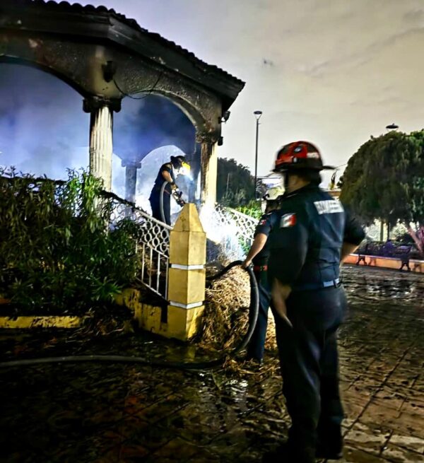 Kanasín, Yucatán.– La Policía Municipal de Kanasín informó que fue sofocado en su totalidad el incendio registrado en el kiosko del parque principal...