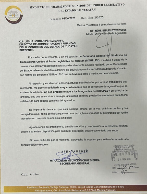 Las agrupaciones que representan a la base trabajadora del Congreso del Estado informaron de manera formal su petición de que el aguinaldo se...