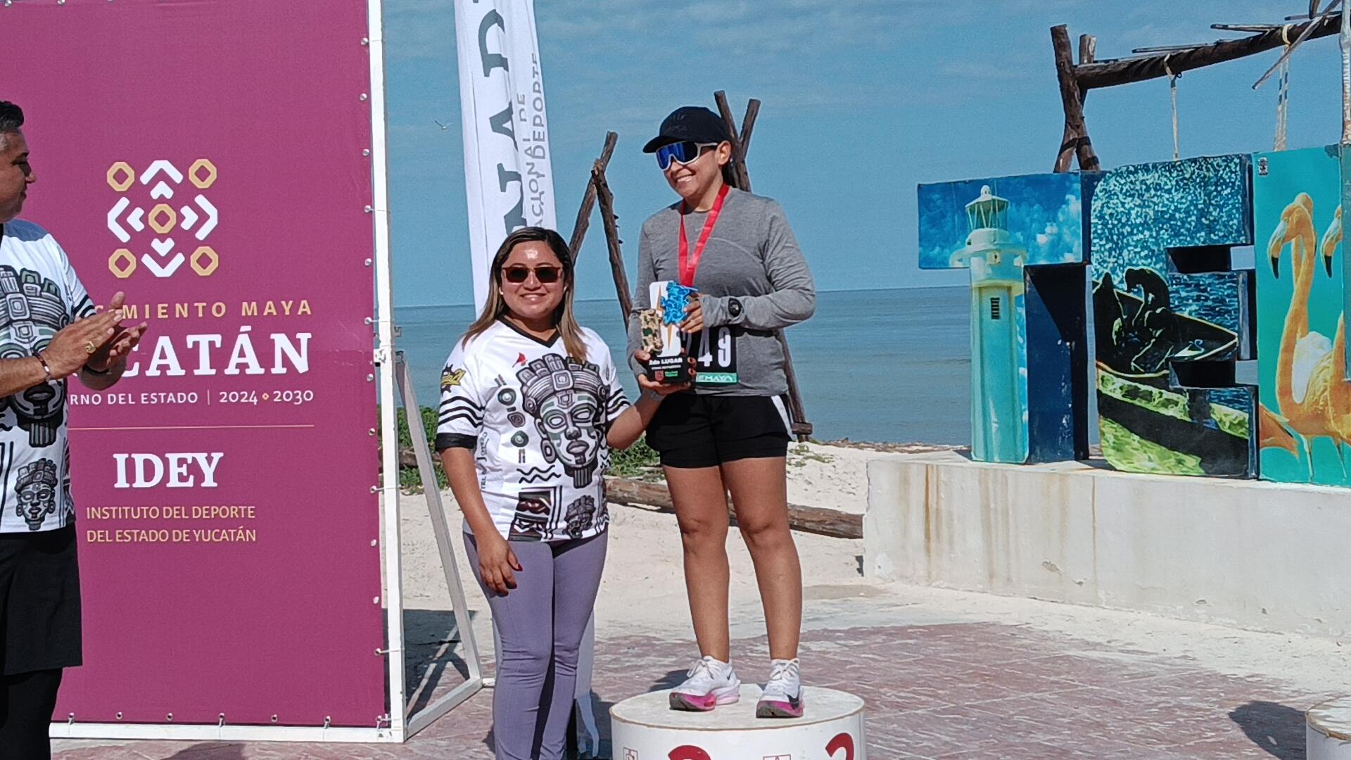 En femenil libre, Rosa Ortíz seguidora de Poseidón fue el primer lugar con 2.29.15 horas y luego, Eva Noya con 2.29.13 horas y María Rivas Díaz con 2.29.15 horas seguidoras ambas de Chaac; en más 60 años femenil, Delia Ancona González del equipo Chaac fue primer lugar con Caridad Aguilar del club Poseidón y Nini Torre del club Chaac, en segundo y tercero, respectivamente llevándose 2.32.00 horas con segundos de diferencia entre una y otra
