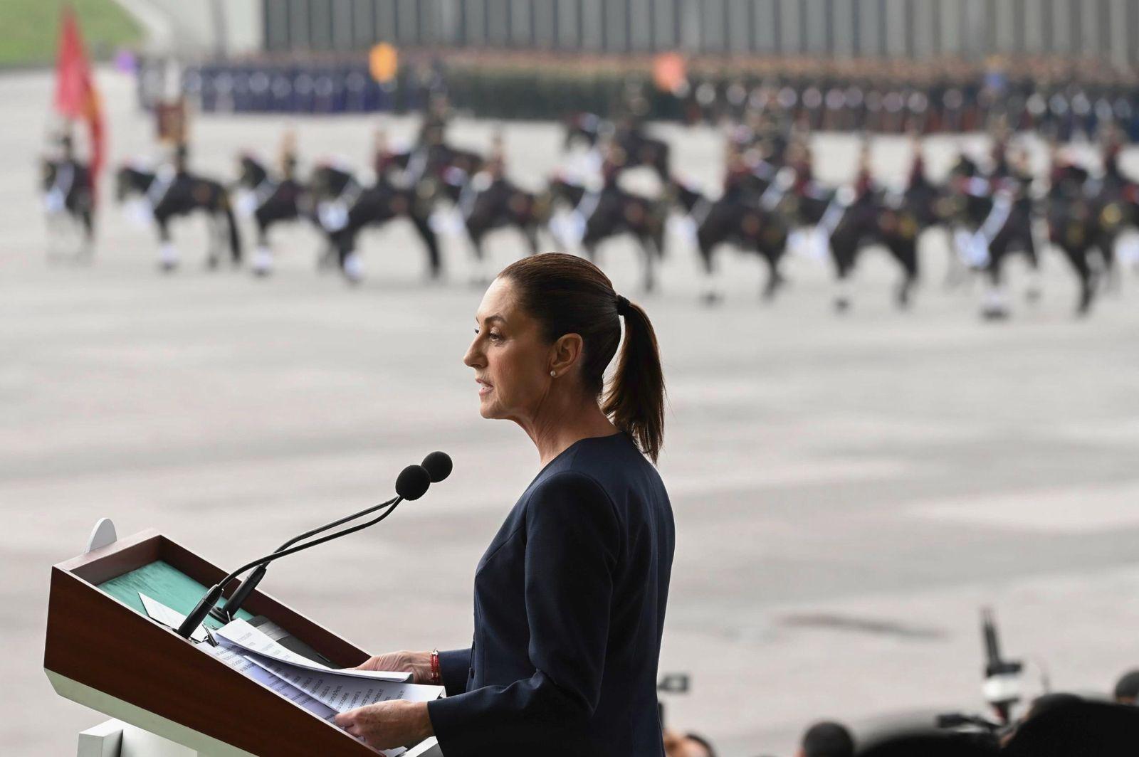 “Con cada paso firme en el camino de la justicia, las Fuerzas Armadas nos recuerdan que la verdadera grandeza radica en la voluntad de servir y de proteger a la patria”, expresó la mandataria al rendir homenaje a las y los cadetes del Heroico Colegio Militar y a los soldados que, dijo, han defendido con honor los valores de la nación.