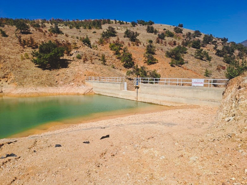 Asimismo, se constató la construcción de una obra hidráulica consistente en una presa de captación de agua pluvial que actualmente se encuentra en etapa de operación y mantenimiento, ocupando una superficie de 2,067 m².