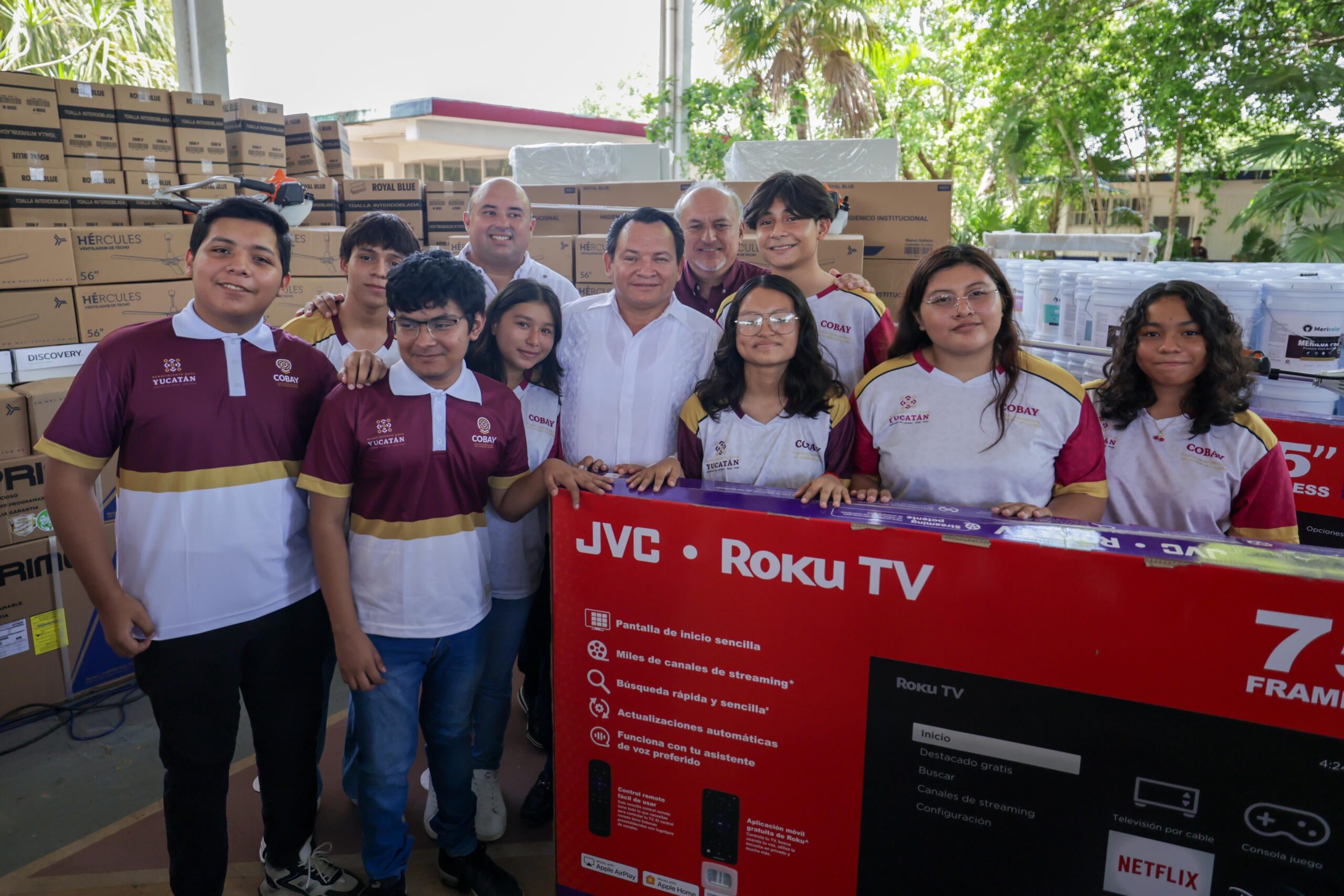 Desde la sede Cobay Chenkú, el mandatario yucateco destacó que este programa responde al rezago de muchos años en el subsistema, cuyos planteles fueron abandonados y carentes de herramientas básicas. “Esta inversión contempla insumos como televisores, escritorios, ventiladores, puertas, aires acondicionados, pintura, papelería, materiales de limpieza, eléctricos y de plomería”, explicó.