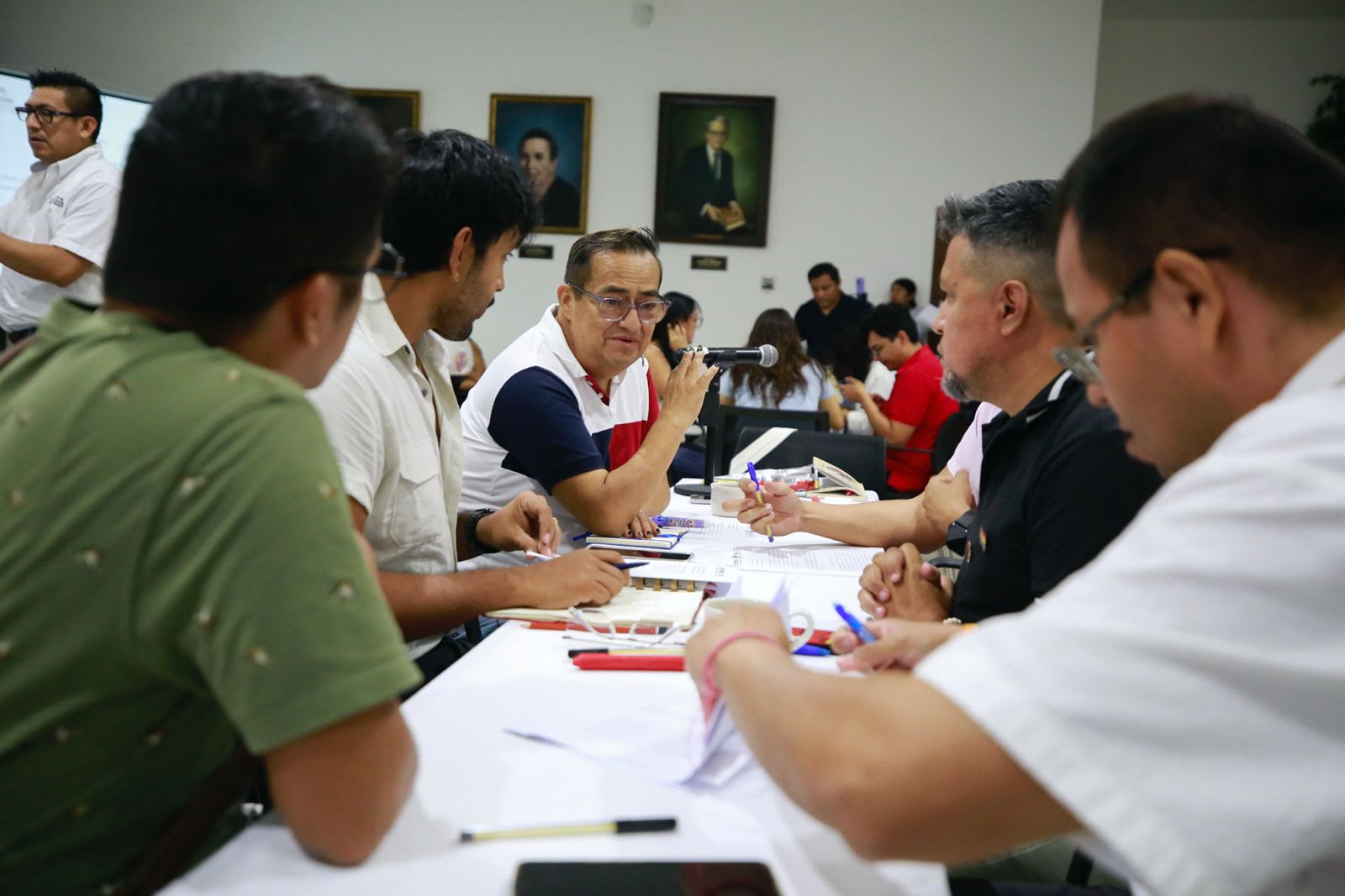 El presídium estuvo integrado por Alan Padrón Albornoz, secretario de las Juventudes; Dorian Herrera, del Colectivo Princesas Mayas; y César Briceño Castro, jefe del Departamento para la Inclusión de las Personas de la Diversidad Sexual de la SEJUVEY. También participaron los diputados Clara Paola Rosales Montiel y José Julián Bustillos Medina.