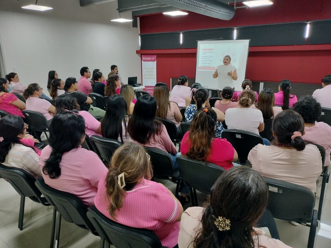 La jornada incluyó la plática “Prevención y detección temprana del cáncer de mama”, impartida por Sandra Hidalgo, enfermera de los Servicios de Salud de Yucatán, quien explicó los factores de riesgo, los signos de alerta y la relevancia de la autoexploración mensual, además de promover estudios de mastografía y ultrasonido.