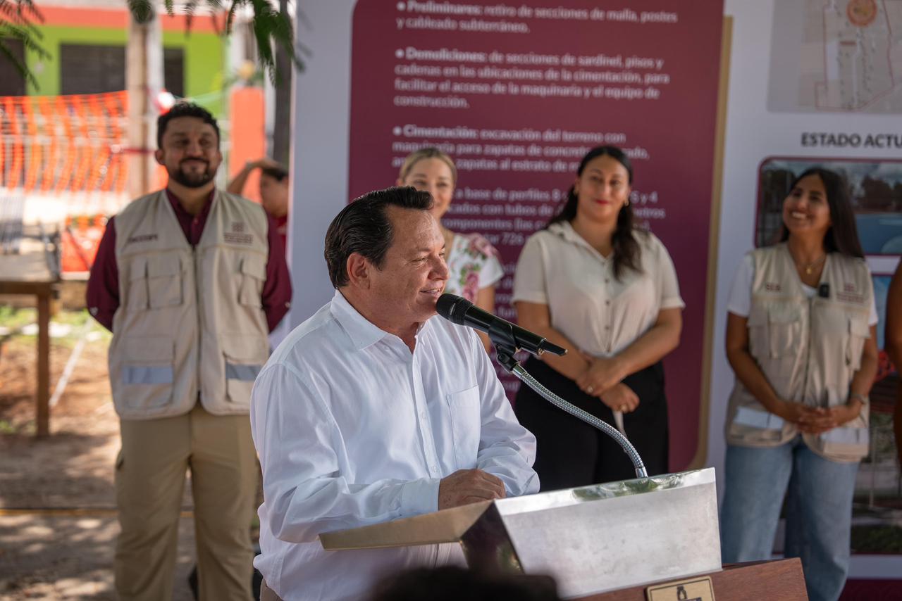 Mérida, Yucatán, 7 de noviembre de 2025.– El Gobernador Joaquín Díaz Mena reafirmó su compromiso con las familias meridanas al supervisar los trabajos de construcción del nuevo domo en el parque El Pez Volador, en la colonia Pacabtún, una obra que forma parte del Plan Bienestar para Mérida y que busca fortalecer el tejido social con espacios dignos y seguros.