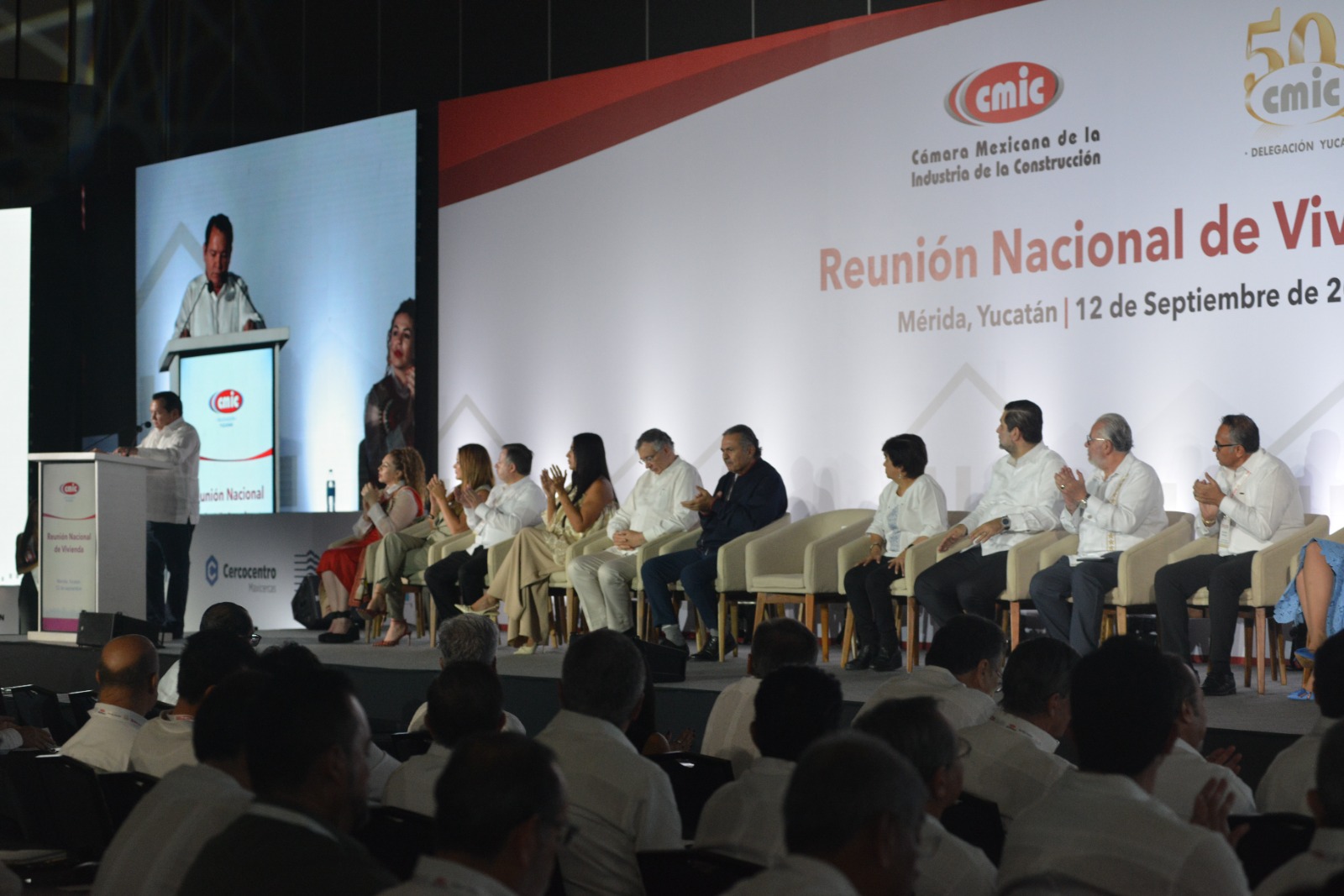 Mérida, Yucatán, 12 de septiembre de 2025. Autoridades federales, estatales y municipales, junto con representantes del sector empresarial y académico, inauguraron este viernes la Reunión Nacional de Vivienda 2025 (RNV) en el Centro Internacional de Congresos de Mérida, organizada por la CMIC Yucatán, que celebra 50 años de trayectoria.