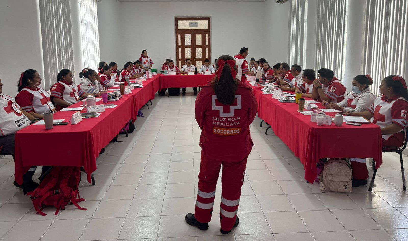 Durante la capacitación, paramédicos de las delegaciones de Mérida, Progreso, Valladolid, Ticul y Autopista, junto con instructores y juventinos, aprendieron la estructura operativa del Puesto de Comando, así como los procedimientos para su activación y funcionamiento dentro de una respuesta organizada.