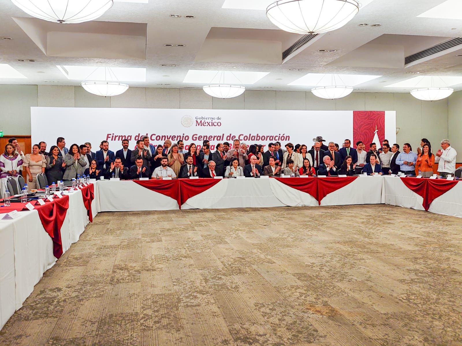En el marco de la firma del convenio, que signaron el gobierno de México, las Secretarías de Bienestar; Agricultura y Desarrollo Rural; Educación Pública; del Trabajo y Previsión Social; Desarrollo Agrario, Territorial y Urbano; las instituciones: Banco del Bienestar, Comisión Nacional de Vivienda (Conavi), Financiera para el Bienestar (Finabien), Instituto Nacional de los Pueblos Indígenas (INPI), Comisión Nacional de Acuacultura y Pesca (Conapesca), Infonavit, IMSS- Bienestar, Issste, Servicio Postal Mexicano (Sepomex) y el Organismo Promotor de Inversiones en Telecomunicaciones (Promtel), coincidieron al señalar la importancia de seguir trabajando en unidad por el bien del pueblo.