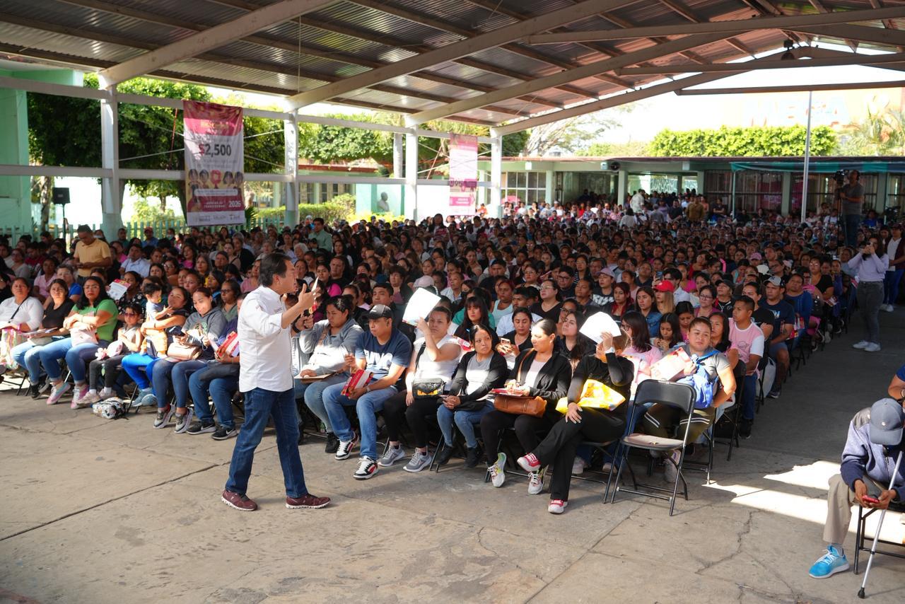 Durante la asamblea realizada en Jiutepec, Morelos, el funcionario explicó que cada estudiante de primaria recibirá 2 mil 500 pesos anuales por núcleo familiar para la adquisición de útiles y uniformes, como parte del fortalecimiento de las políticas educativas impulsadas por el Gobierno de México.