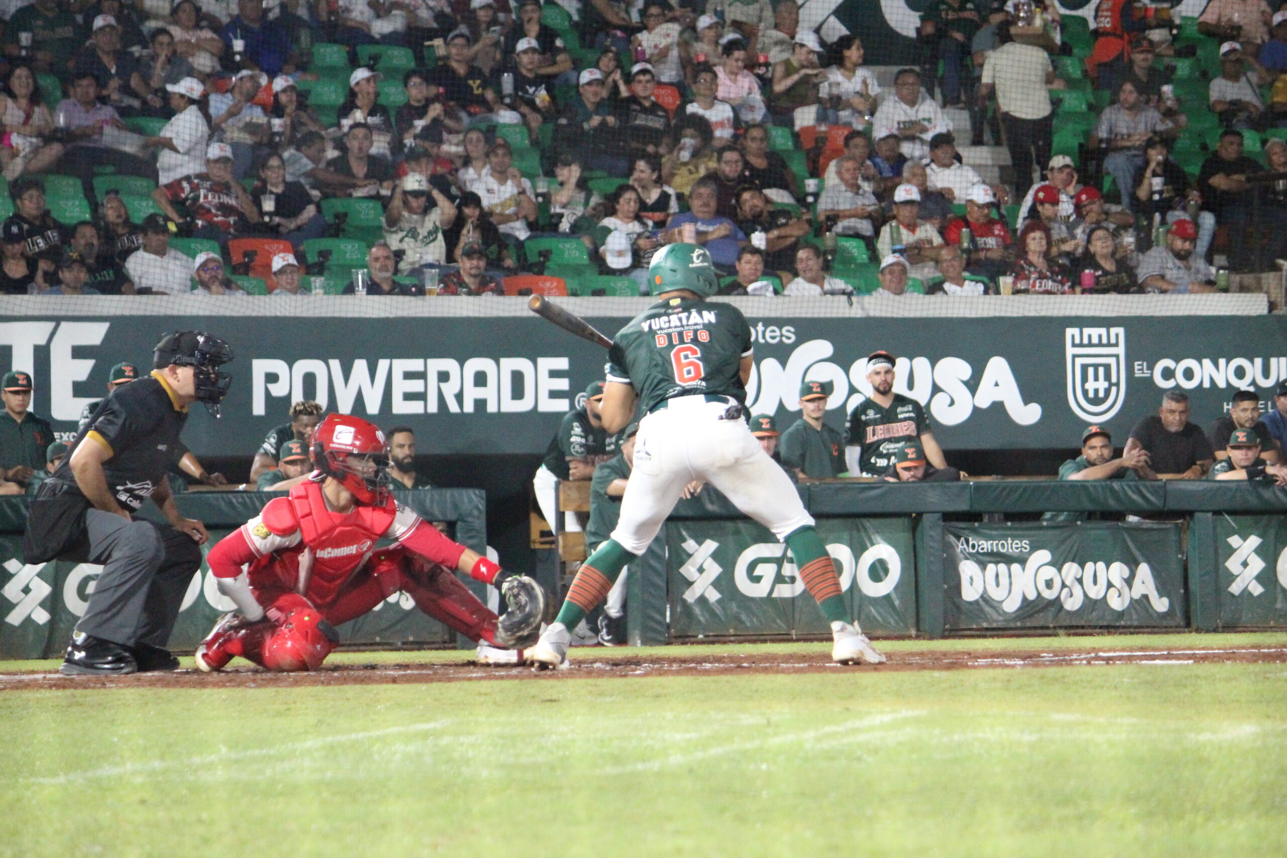 La novena escarlata abrió el marcador en la primera entrada con un doblete de Robinson Canó que remolcó carrera, seguido por un elevado de sacrificio de Arístides Aquino que trajo la segunda. Yucatán respondió en la tercera baja con un doble impulsor de Yadir Drake que mandó al plato a Henry Ramos.