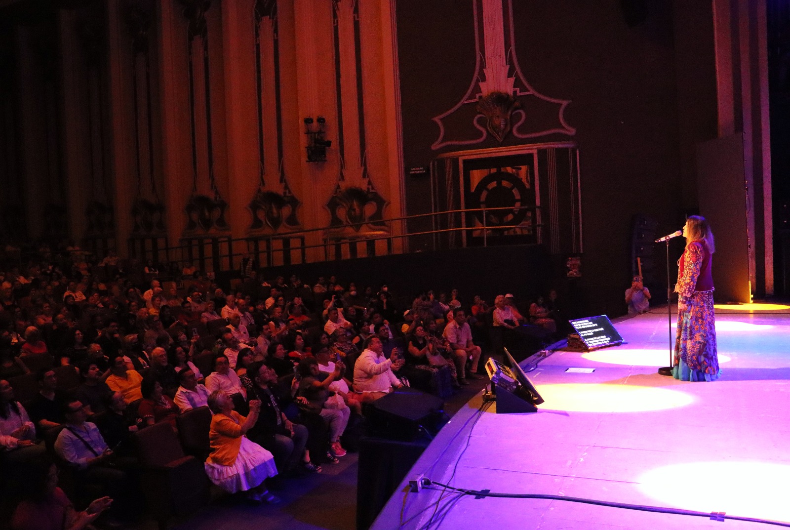 Mérida, Yucatán, 15 de febrero de 2026.– La voz de Tania Libertad convirtió la celebración del Día del Amor y la Amistad en una velada de nostalgia, poesía y virtuosismo vocal, durante el concierto gratuito organizado por la Secretaría de la Cultura y las Artes (Sedeculta) en el Teatro Armando Manzanero, que registró lleno total.