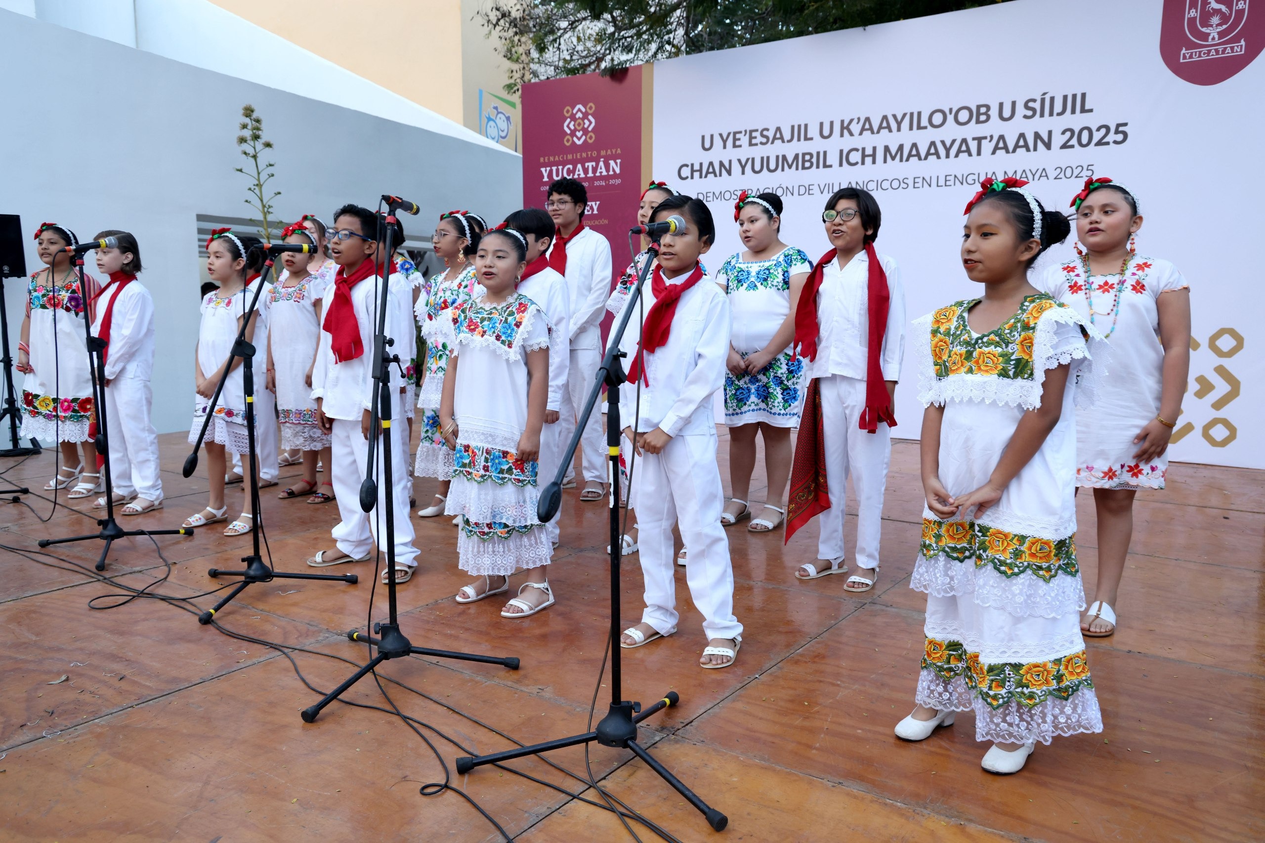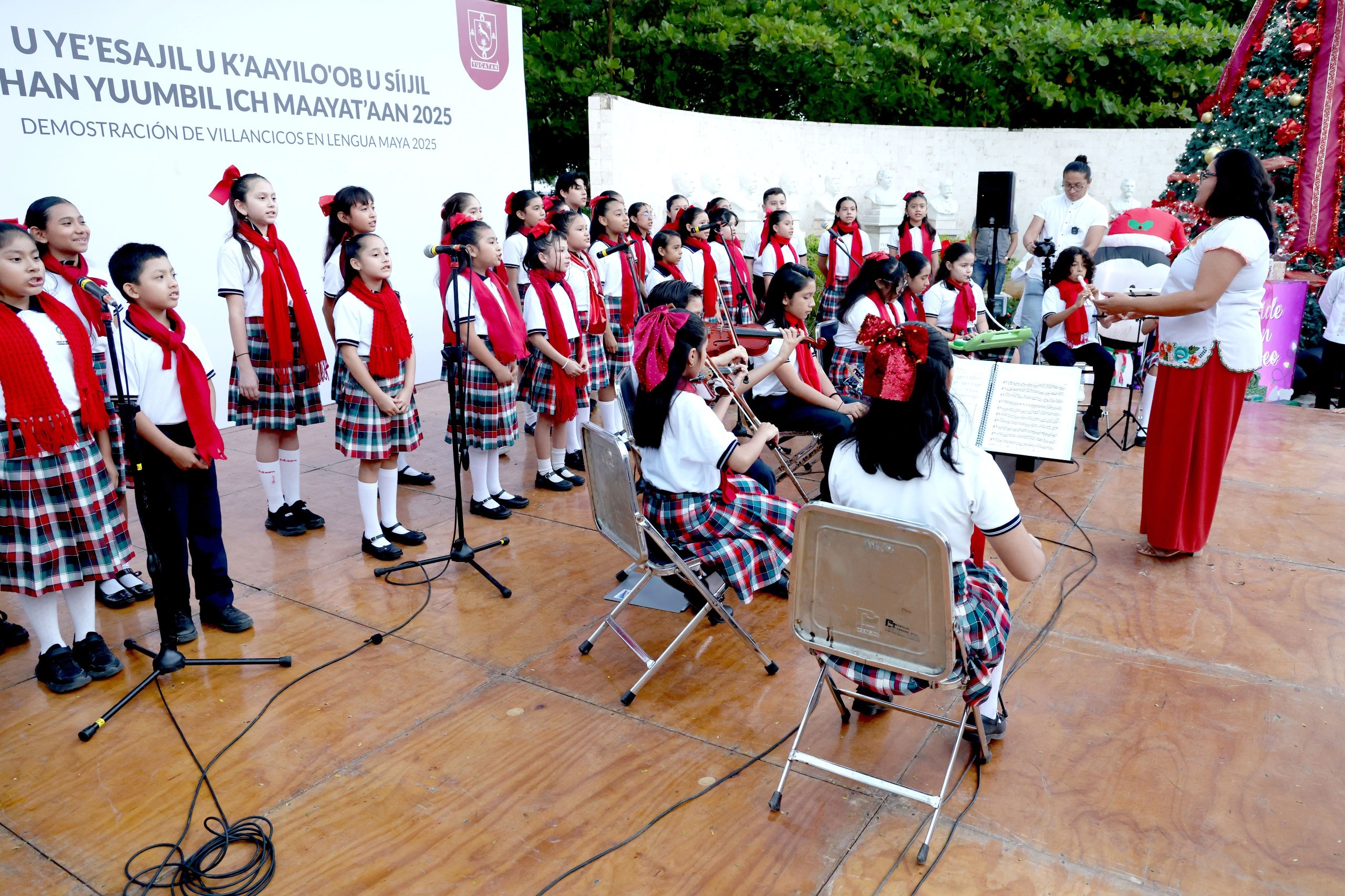 La explanada de la Secretaría de Educación del Gobierno del Estado de Yucatán (Segey) se llenó de orgullo, identidad y espíritu navideño con la presentación de villancicos en lengua maya, interpretados por alumnas y alumnos de Educación Indígena y del programa Ko’one’ex Kanik Maaya (Vamos a aprender maya).