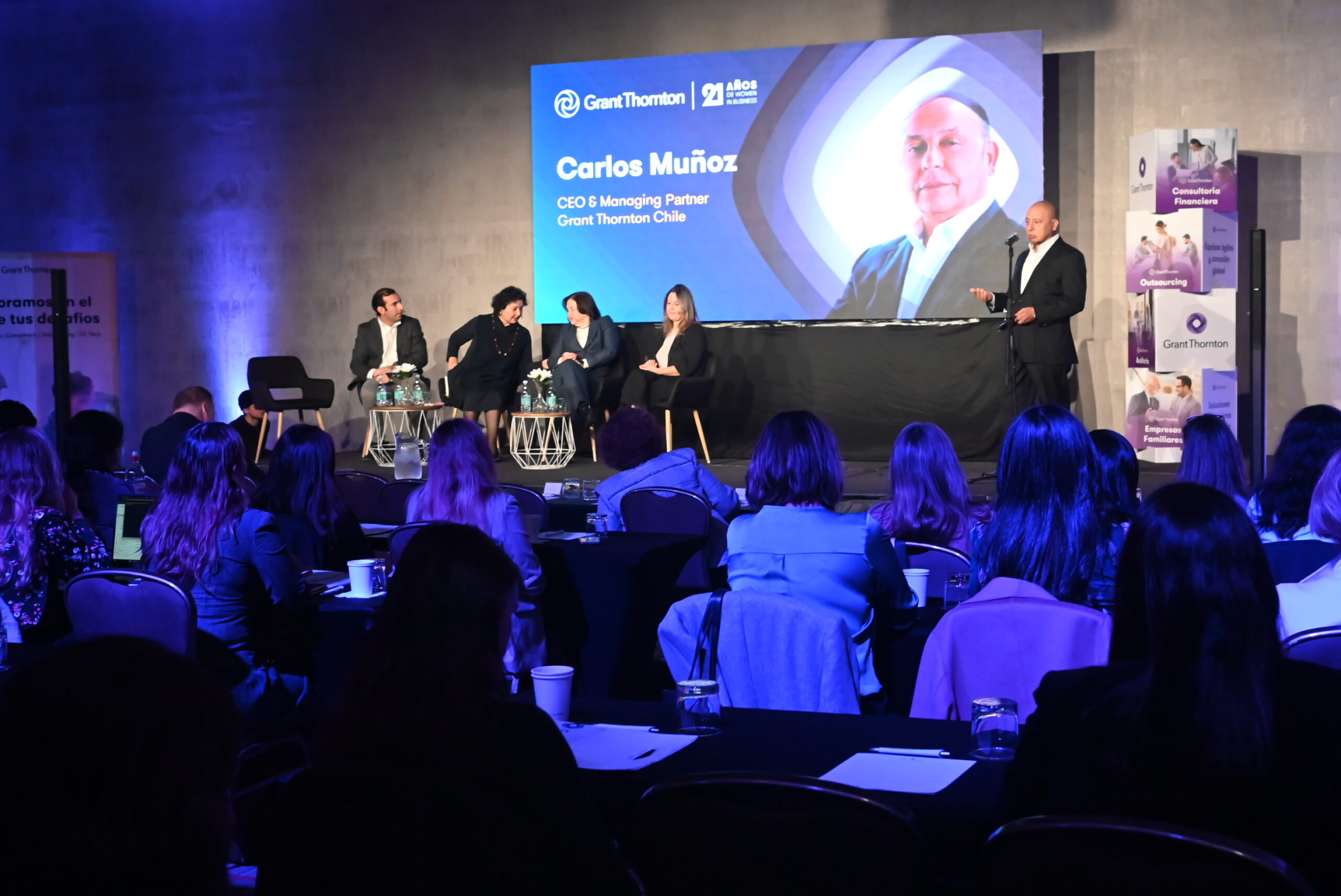 Carlos Muñoz Saravia, CEO de Grant Thornton Chile, destacó que en los últimos 12 años se han observado avances significativos en la ocupación de cargos como CEO (de 5% en 2012 a 19% en 2024), Finanzas (de 12% a 39%) y Recursos Humanos (de 11% a 46%).