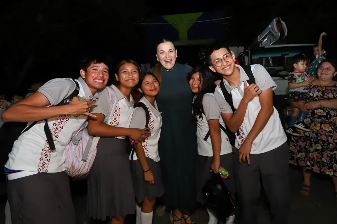 Durante el encendido acompañaron a la alcaldesa: Arturo León Itzá, director de Desarrollo Social y Combate a la Pobreza; Luis Jorge Montalvo Duarte, director de Servicios Públicos; y la regidora Karla Boehm Calero.
