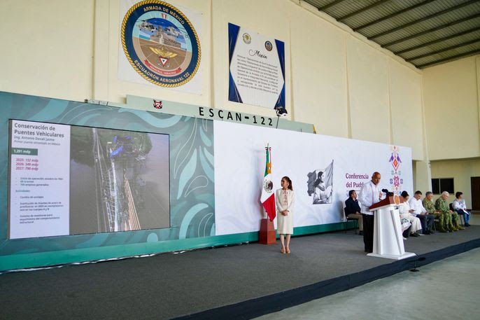 “Es una inversión de cerca de 20 mil millones de pesos para Veracruz, entre 2026 y 2027, puentes, carreteras, mejoramiento de las carreteras, agua potable, desazolve de ríos, reencauzamiento de los ríos y también vivienda para todas aquellas personas afectadas durante las lluvias de 2025”, destacó en la conferencia matutina: “Las mañaneras del pueblo”, que se realizó en la Base Aeronaval de Veracruz.