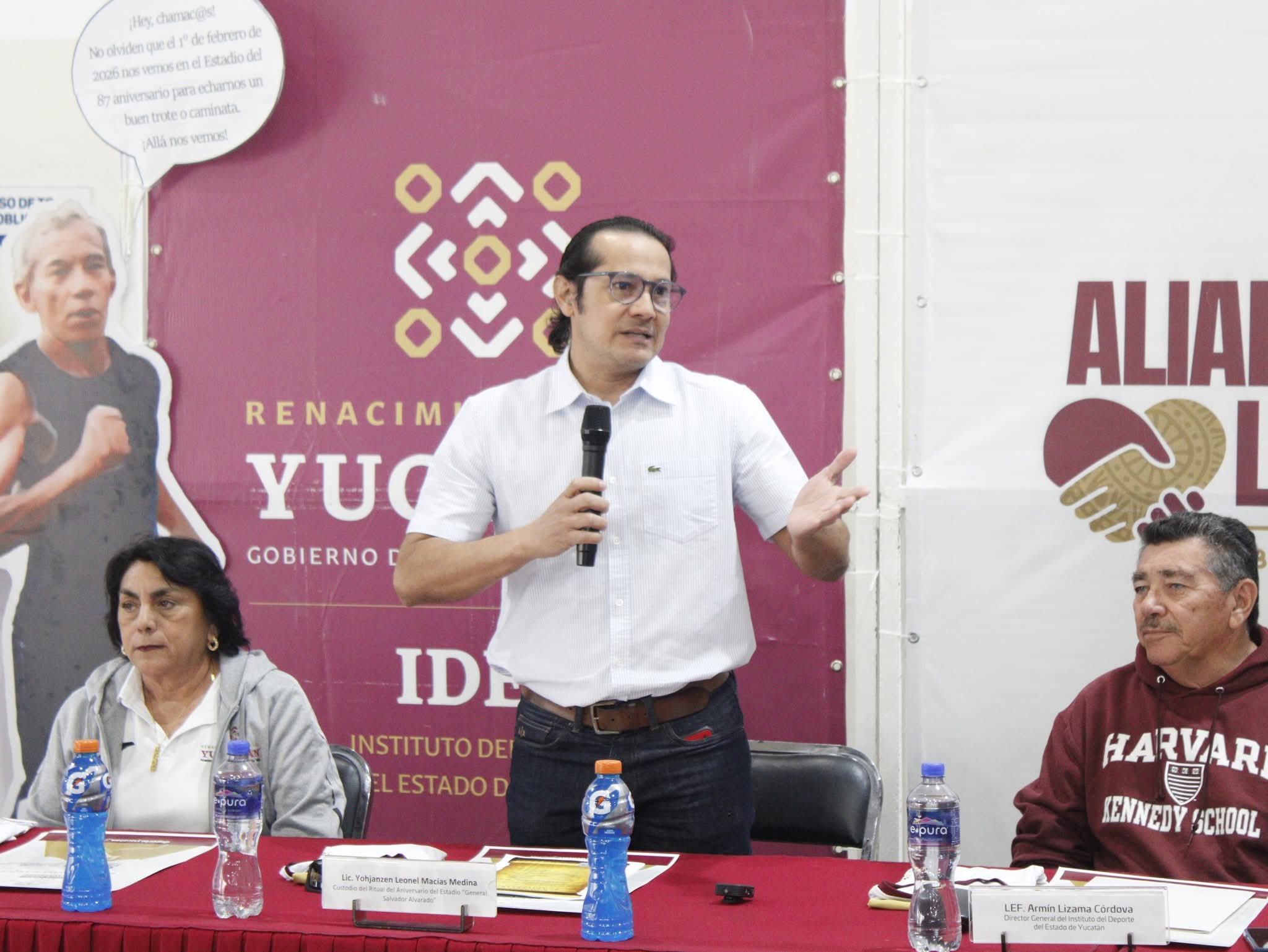 En la rueda de prensa donde se presentaron las actividades estuvieron presentes Armin Lizama Córdova, Director del Instituto del Deporte del Estado de Yucatán (IDEY); Johansen Macías Medina, custodio de las actividades del estadio; Leonel Macías Sánchez; Grisele Ordaz Tamayo, administradora del estadio; Alejandro Medina Alvarado, Director de Unidades Deportivas, y la atleta Patricia Mendoza Lugo.