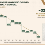 Ciudad de México, 9 de septiembre de 2025.- El Gobierno de México informó que en agosto pasado se registraron 27 homicidios dolosos menos al día en comparación con septiembre de 2024, al pasar de un promedio de 86.9 víctimas diarias a 59.2.