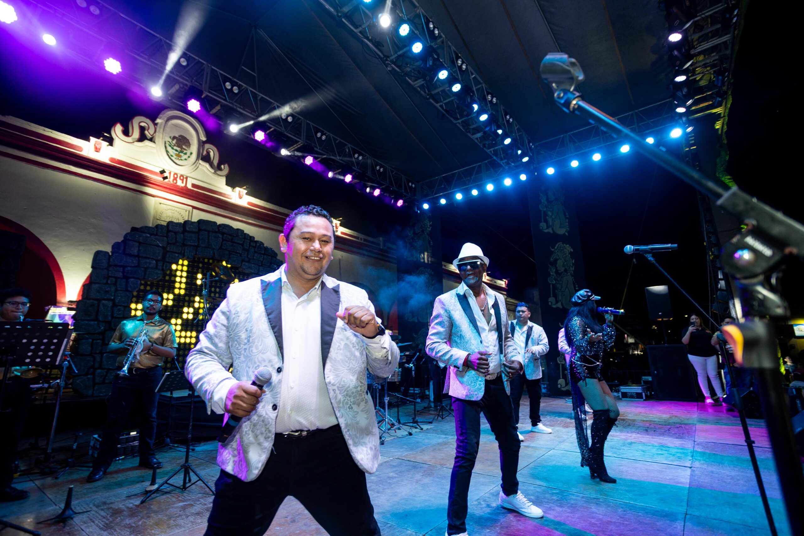 La velada contó con la participación especial de la reconocida actriz Irina Baeva, quien deslumbró con su presencia y carisma. La animación musical estuvo a cargo de Juan Carlos Tapia “Paleto” y el impactante Tributo a la Sonora Dinamita, quienes pusieron a bailar a los asistentes en la Plaza Principal.