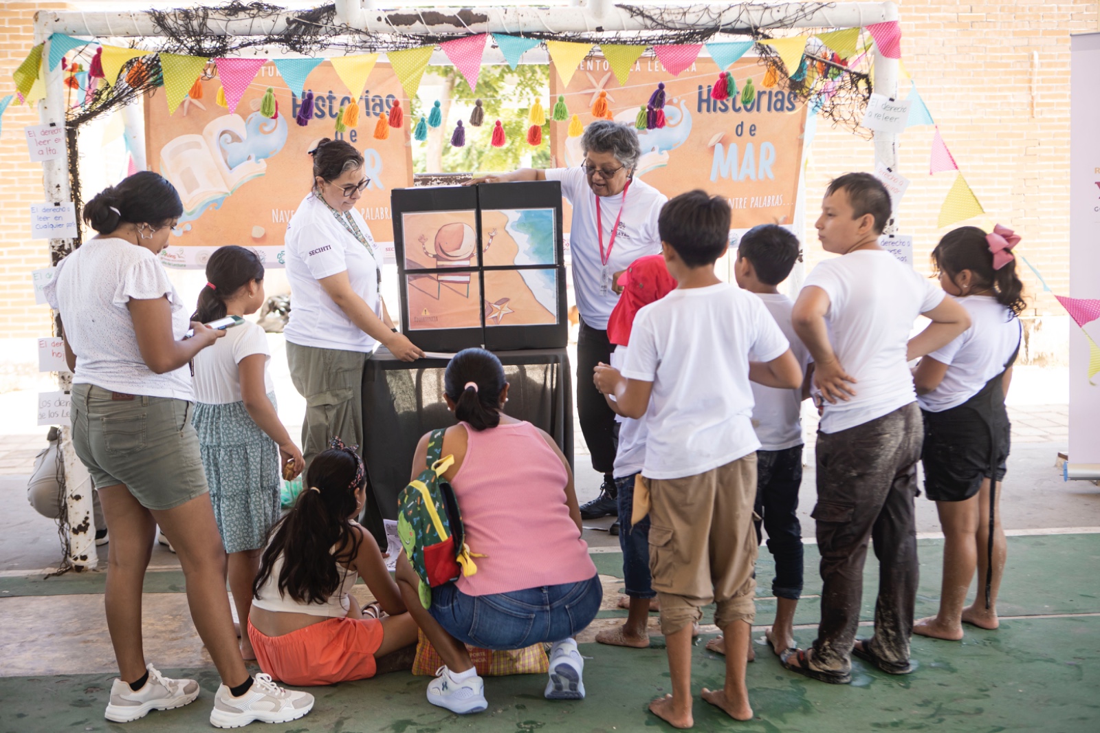Durante los meses de julio y agosto, más de 500 niñas, niños y sus tutores de comisarías rurales recorrerán el puerto de Chuburná para participar en talleres como Buceadoras por un día, Casita de plásticos, Historias del mar: navegando entre palabras y Polinizadores de la duna costera.