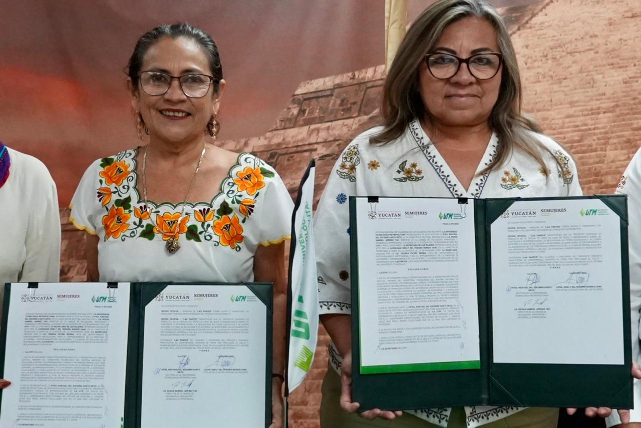 Mérida, Yucatán, 31 de mayo de 2025. – La Secretaría de las Mujeres (Semujeres) y la Universidad Tecnológica Metropolitana (UTM) firmaron un convenio de colaboración que busca fortalecer la innovación educativa desde una perspectiva de género, promoviendo una cultura de igualdad y respeto desde las aulas, como parte del proyecto integral del Renacimiento Maya impulsado por el gobernador Joaquín Díaz Mena.