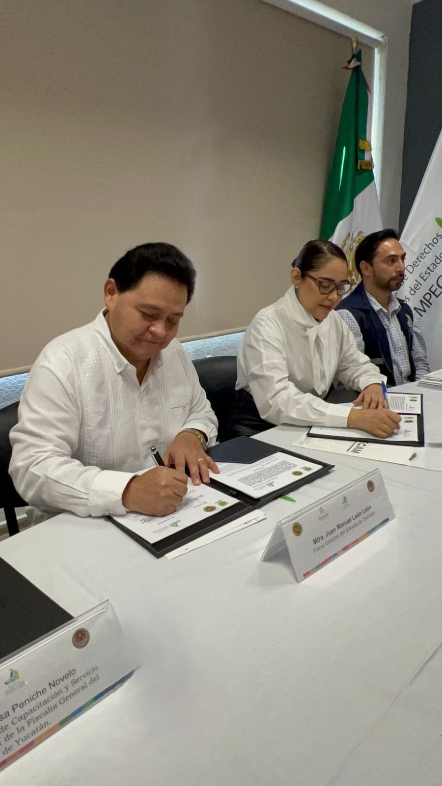 Mérida, Yucatán, 12 de febrero de 2026.– Con el objetivo de reforzar la profesionalización y actualización jurídica de su personal, la Fiscalía General del Estado de Campeche (FGE) firmó un convenio de colaboración académica con la Comisión Estatal de Derechos Humanos de Campeche (CEDH), para impartir la Especialidad en Derechos Humanos en los Procesos Orales, Civiles y Familiares, en el marco de la reforma al Código Nacional.
