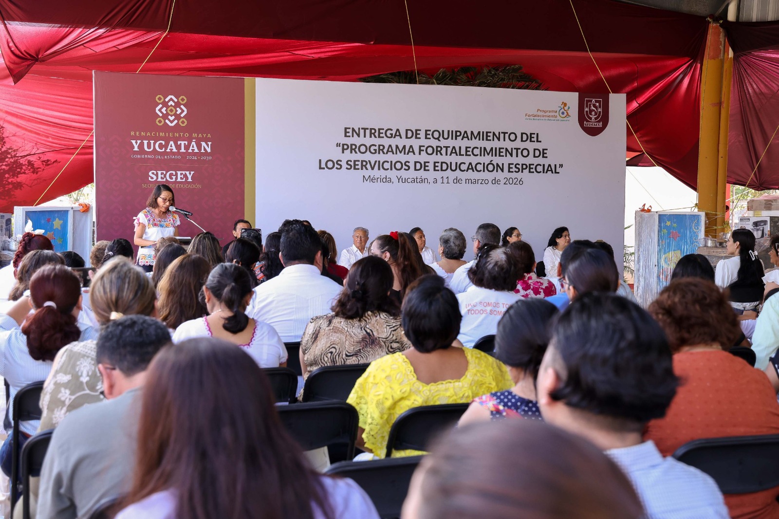 Mérida, Yucatán, 11 de marzo de 2026.- Con una inversión superior a 7 millones de pesos provenientes del Programa Federal Fortalecimiento de los Servicios de Educación Especial, la Secretaría de Educación del Gobierno del Estado de Yucatán (SEGEY) realizó la entrega de equipamiento y material didáctico para fortalecer la atención educativa de alumnas y alumnos con discapacidad y/o aptitudes sobresalientes.