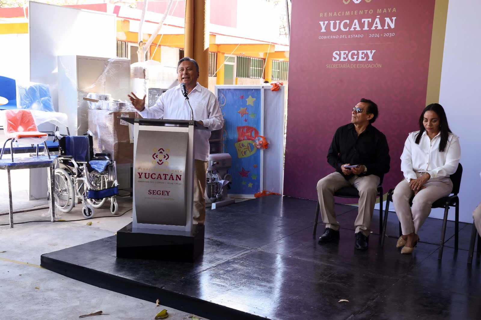 La entrega se realizó en el Centro de Atención Múltiple (CAM) número 28 y fue encabezada por el titular de la SEGEY, Juan Enrique Balam Várguez, quien destacó que estas acciones forman parte del compromiso del Gobierno del Estado que encabeza el Gobernador Joaquín Díaz Mena, de impulsar una educación humanista e integral en la que nadie se quede atrás.