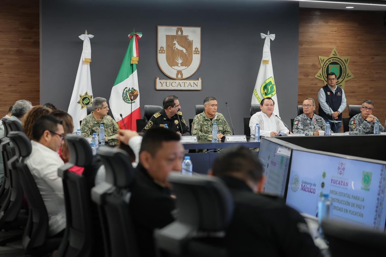 En la reunión participaron el secretario de Seguridad Pública de Yucatán, Luis Felipe Saidén Ojeda; el comandante de la 32/a Zona Militar, general Bernardo Reginaldo Reyes Herrera; el jefe de Estado Mayor de la Novena Zona Naval, contralmirante Víctor Omar Mendoza Aguilar; así como representantes de la Guardia Nacional, la Fiscalía Federal y el Centro Nacional de Inteligencia.