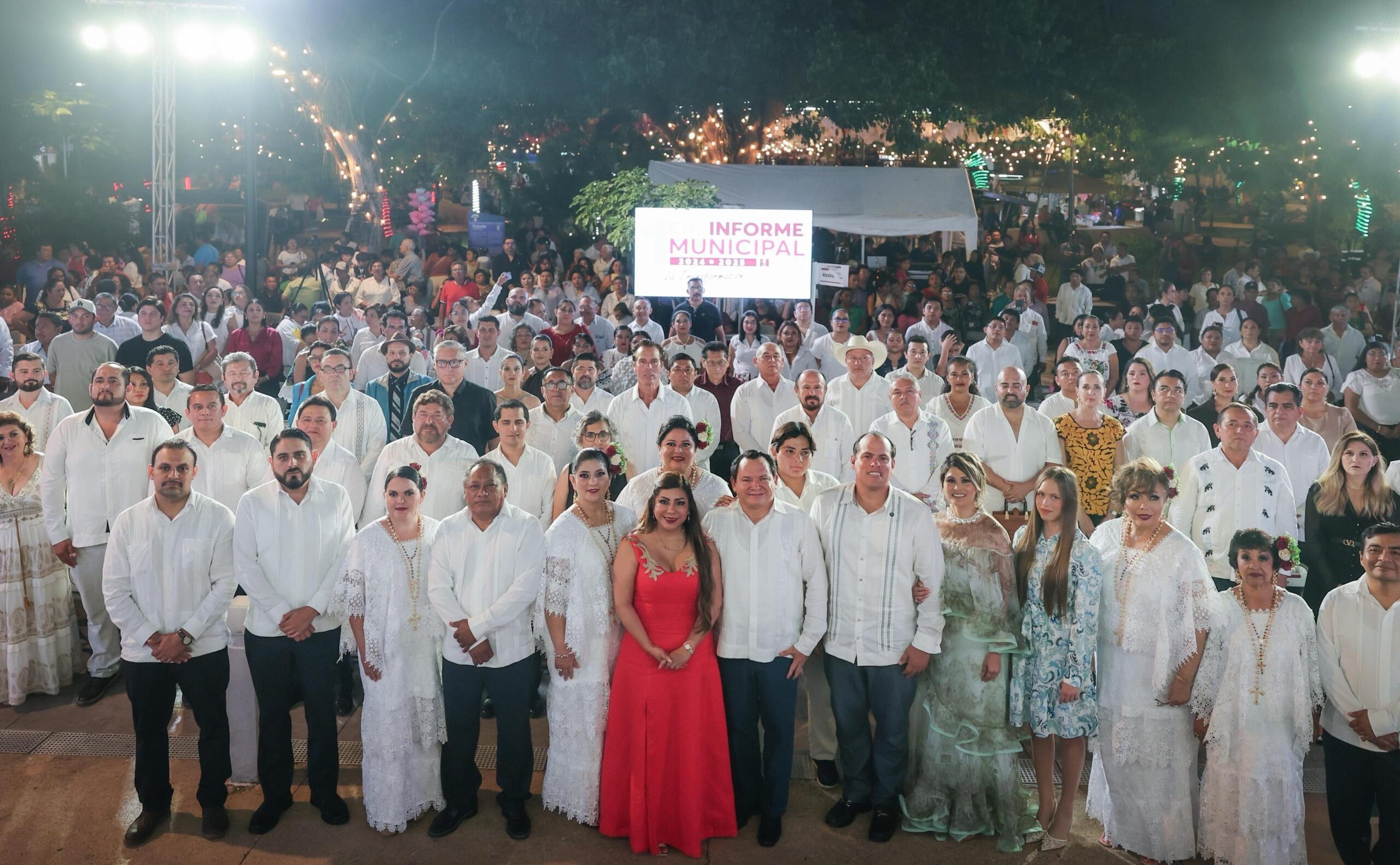 En materia de seguridad, recordó que entregó diez patrullas al municipio y reconoció la inversión adicional del alcalde en motocicletas y vehículos para reforzar la tranquilidad de las familias tizimileñas.