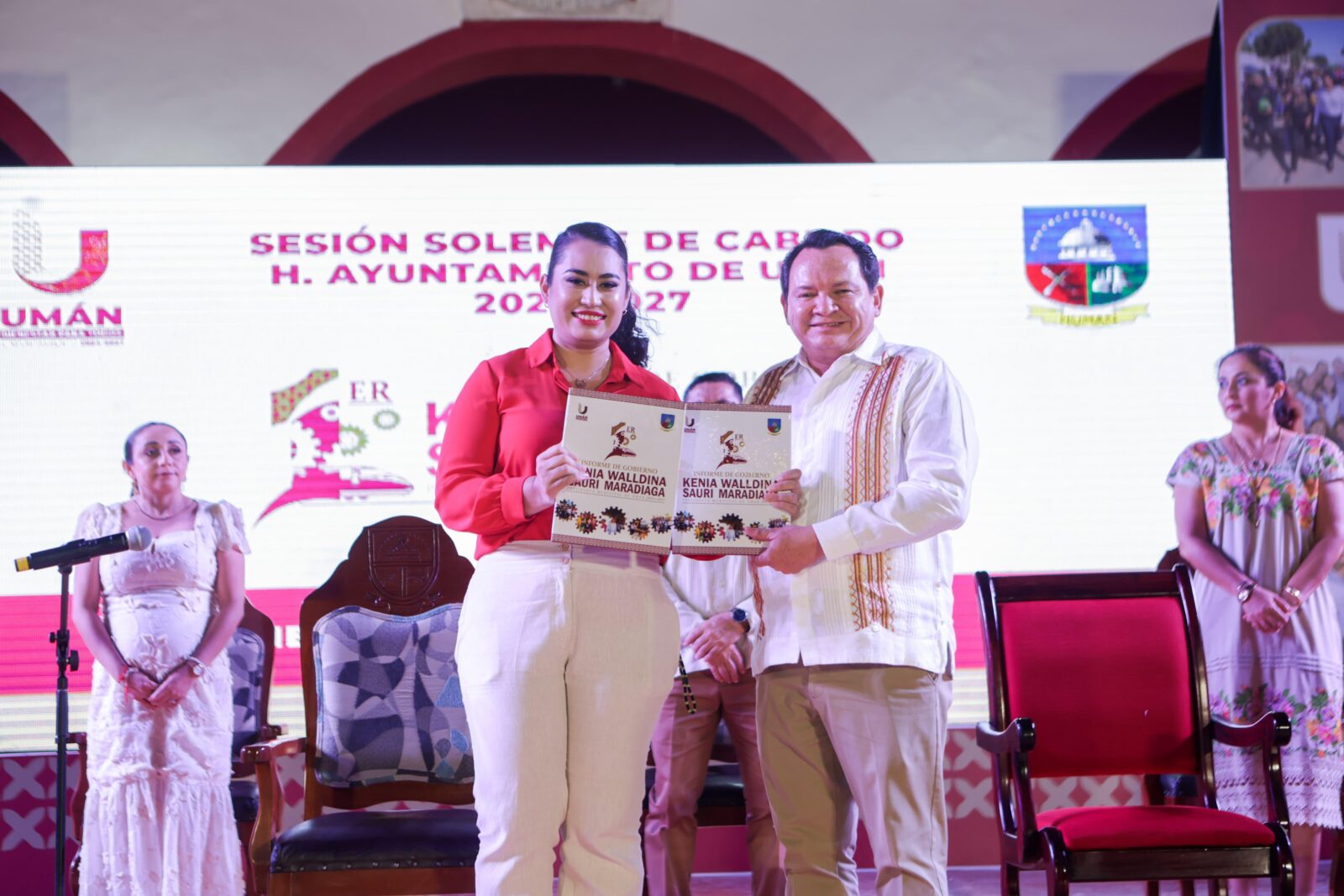 Umán, Yucatán.- El Gobernador Joaquín Díaz Mena asistió al Primer Informe de Gobierno de la alcaldesa Kenia Sauri Maradiaga, donde reconoció los avances en infraestructura, educación y bienestar social, y reafirmó el compromiso del Gobierno del Estado con el desarrollo del municipio.