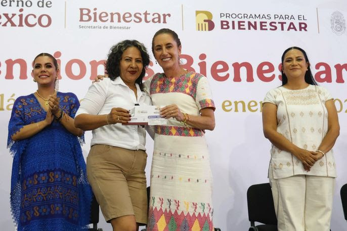 “Todas y todos los adultos mayores de 65 y más reciben una pensión, pero además ya no solo es un Programa del Bienestar, es un derecho escrito en el Artículo Cuarto de la Constitución de la República”, agregó.