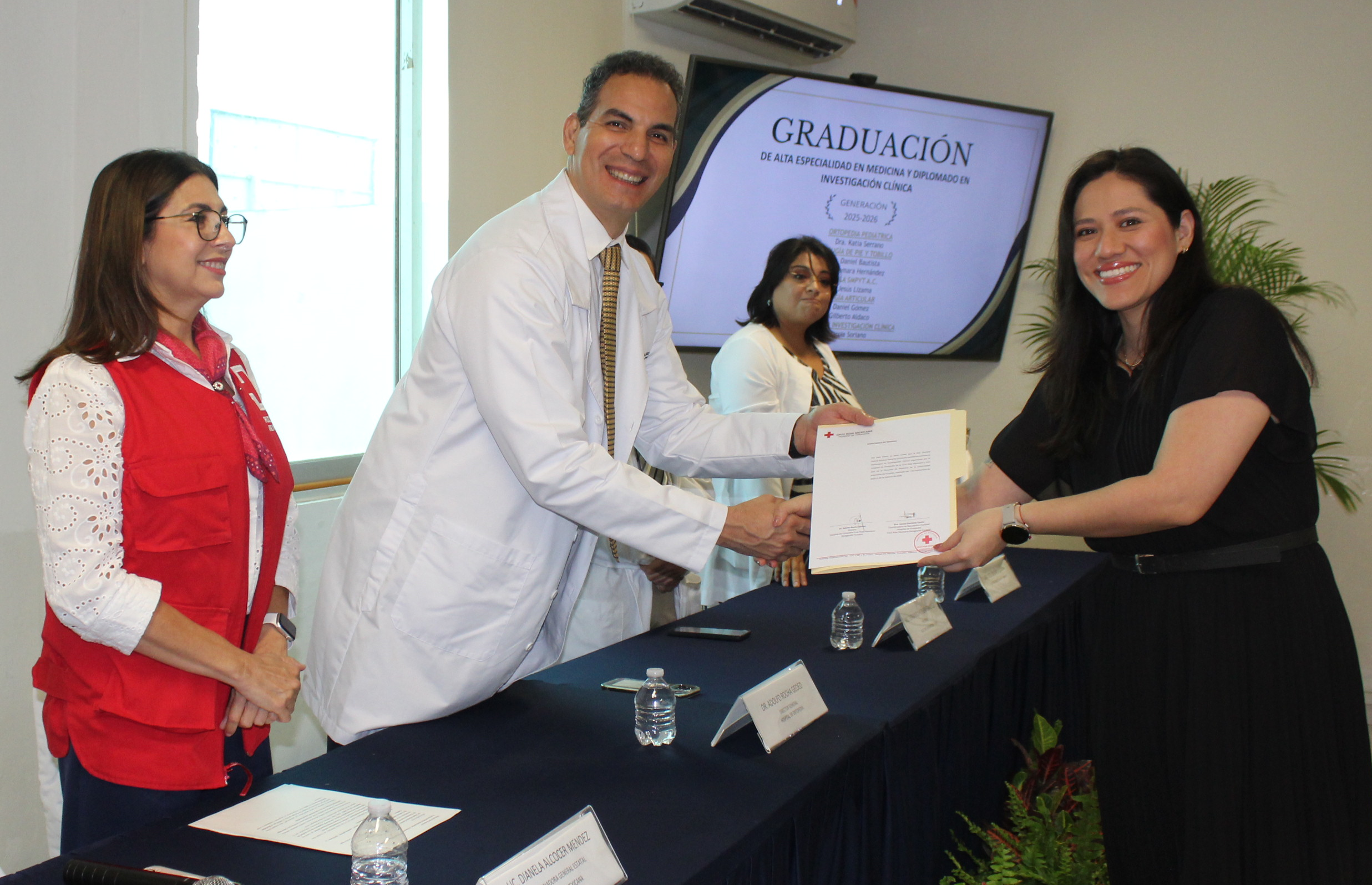 Los médicos graduados de los Cursos de Alta Especialidad fueron: en Ortopedia Pediátrica, Katia Serrano; en Cirugía de Pie y Tobillo, Daniel Bautista y Tamara Hernández; en Cirugía Articular, Daniel Gómez y Gilberto Aldaco. En el Diplomado en Investigación Clínica concluyó Marcia Soriano, mientras que por parte de la Sociedad Mexicana de Pie y Tobillo A.C. egresó Jesús Lizama, todos con aval académico de la Facultad de Medicina de la Universidad Autónoma de Yucatán.