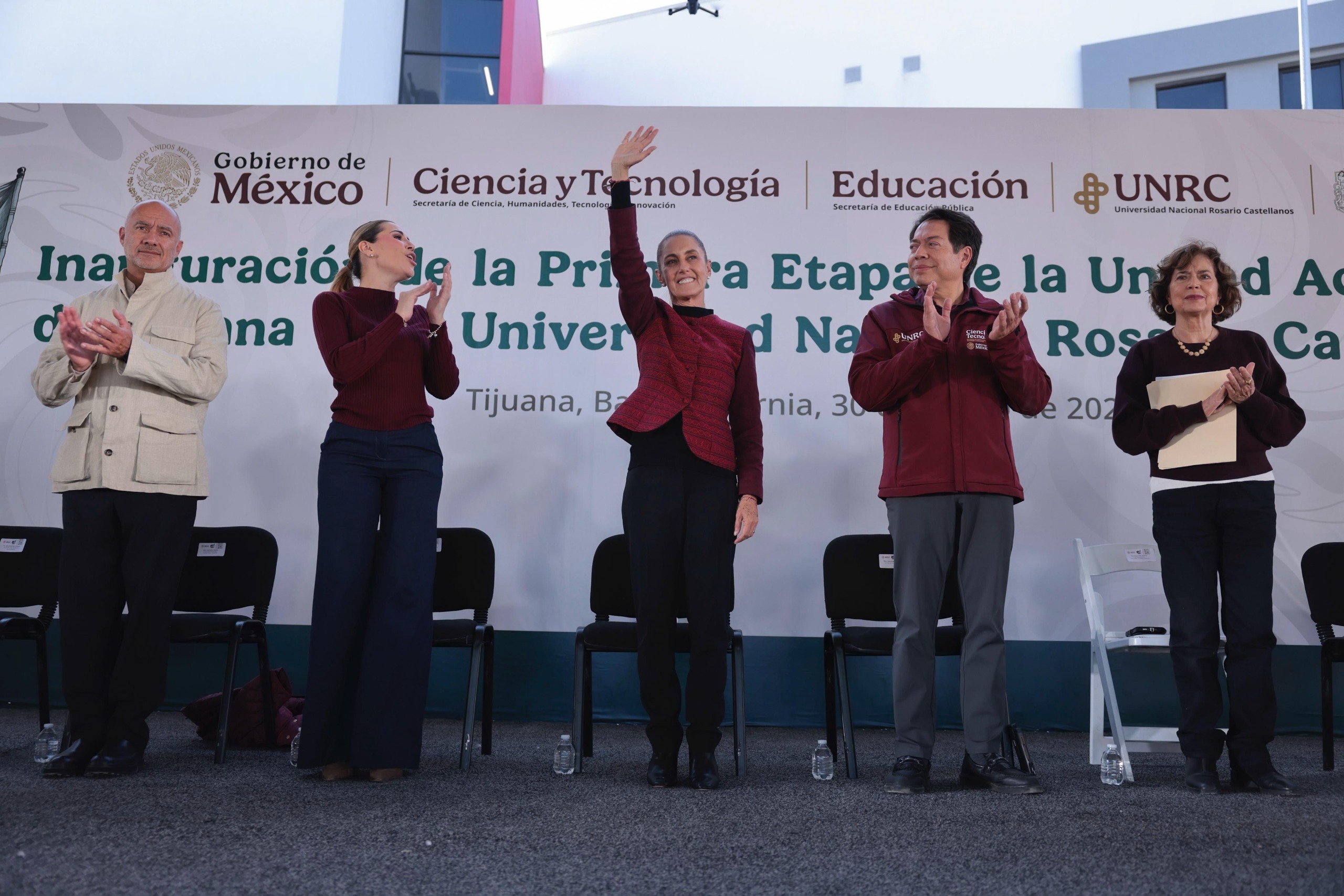 Tijuana, Baja California, a 30 de enero de 2026.- La Presidenta de México, Claudia Sheinbaum Pardo, inauguró la Primera Etapa de la Unidad Académica de Tijuana de la Universidad Nacional Rosario Castellanos (UNRC) y anunció que también se construirá una Unidad Académica en Mexicali, Baja California.