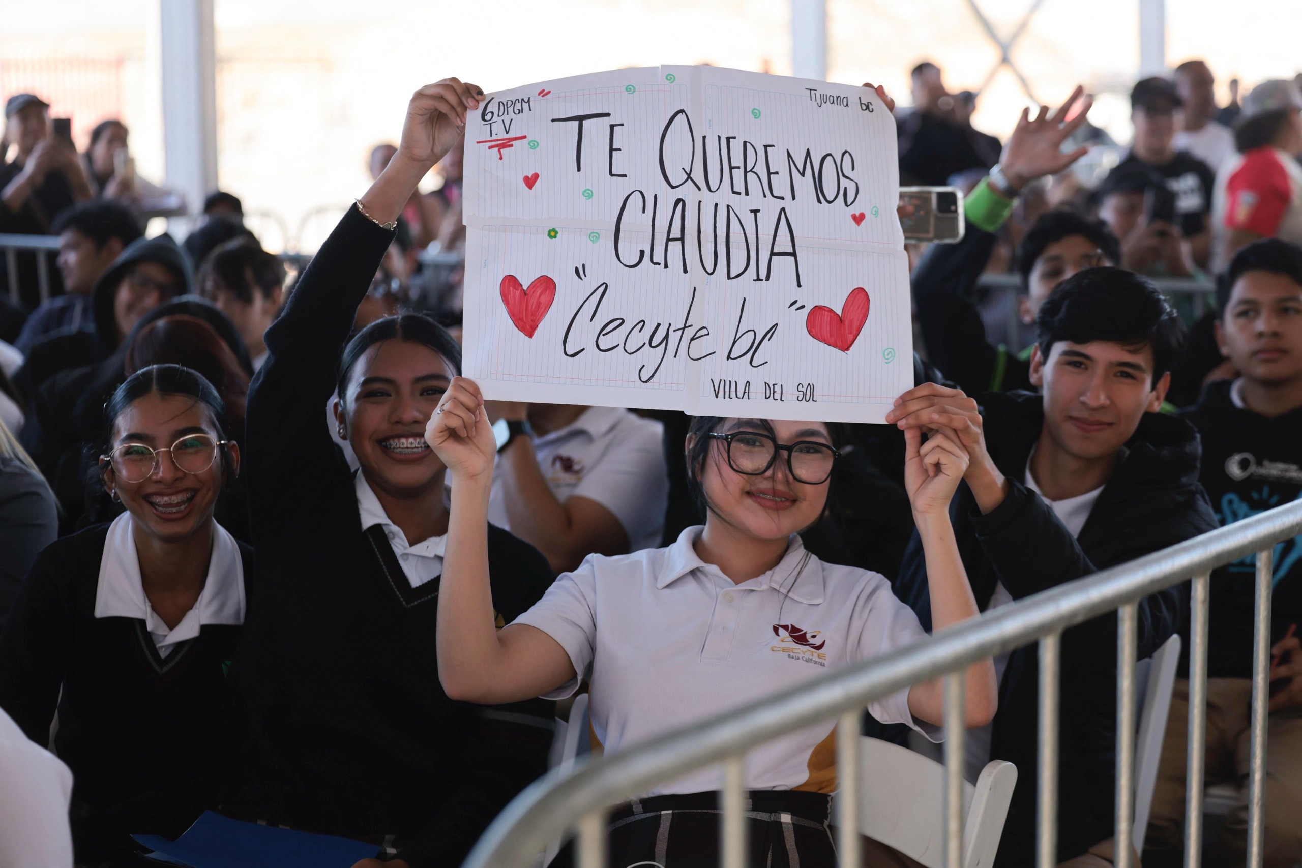 * “Las y los jóvenes de Tijuana tienen derecho a la educación superior en la Universidad Nacional Rosario Castellanos; y así como aquí en Tijuana, vamos a abrir más preparatorias, más universidades”, destacó