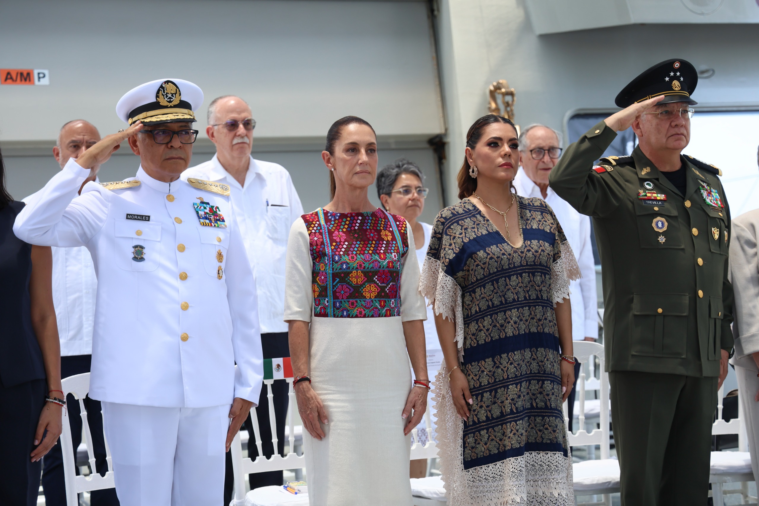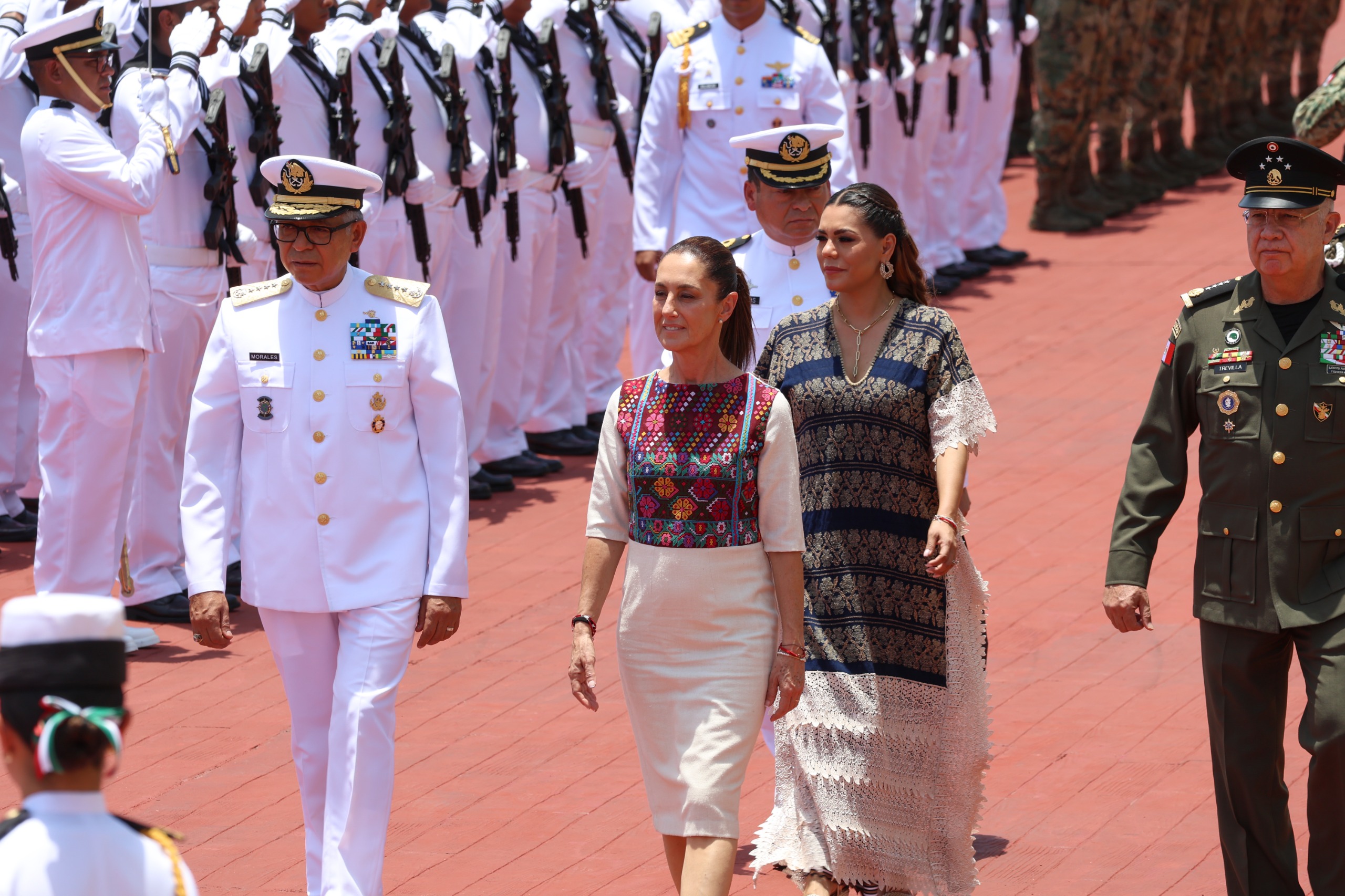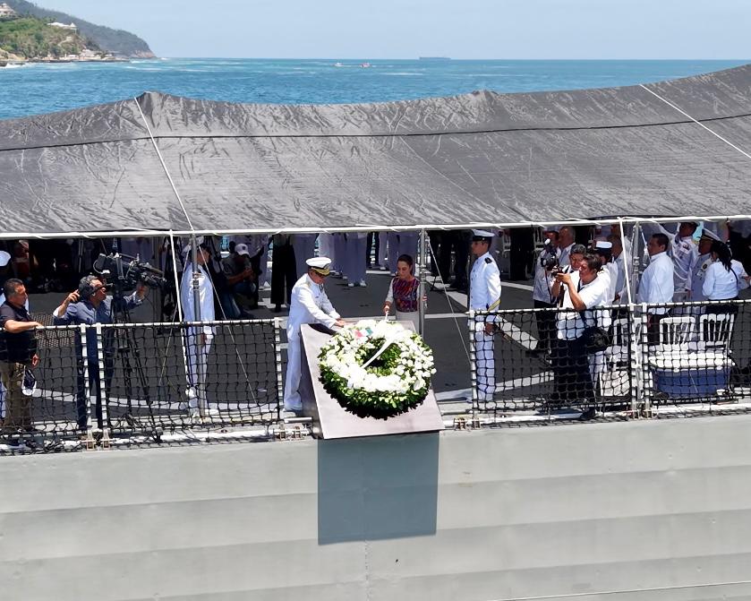Además, la Presidenta rindió homenaje a los cadetes América Yamilet Sánchez Hernández y Adal Jair Maldonado Marcos, quienes perdieron la vida recientemente en el Buque Escuela Cuauhtémoc en Nueva York. También entregó condecoraciones y menciones honoríficas a marinos destacados y colocó una ofrenda en memoria de quienes han caído en cumplimiento de su deber.