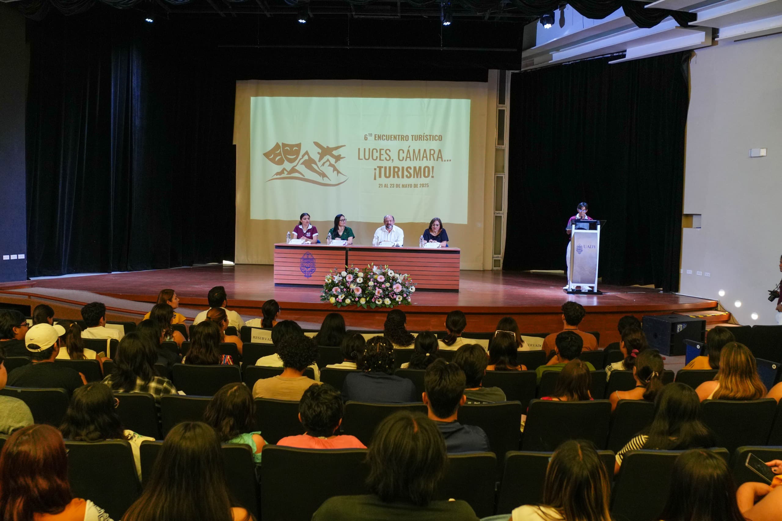 Mérida, Yucatán, a 22 de mayo de 2025.– Con el objetivo de inspirar a las nuevas generaciones a formar parte activa de la industria turística, el Gobierno del Renacimiento Maya, a través de la Secretaría de Fomento Turístico (SEFOTUR), participó en el 6º Encuentro Turístico “Luces, Cámara… ¡Turismo!”, organizado por la Universidad Autónoma de Yucatán (UADY).
