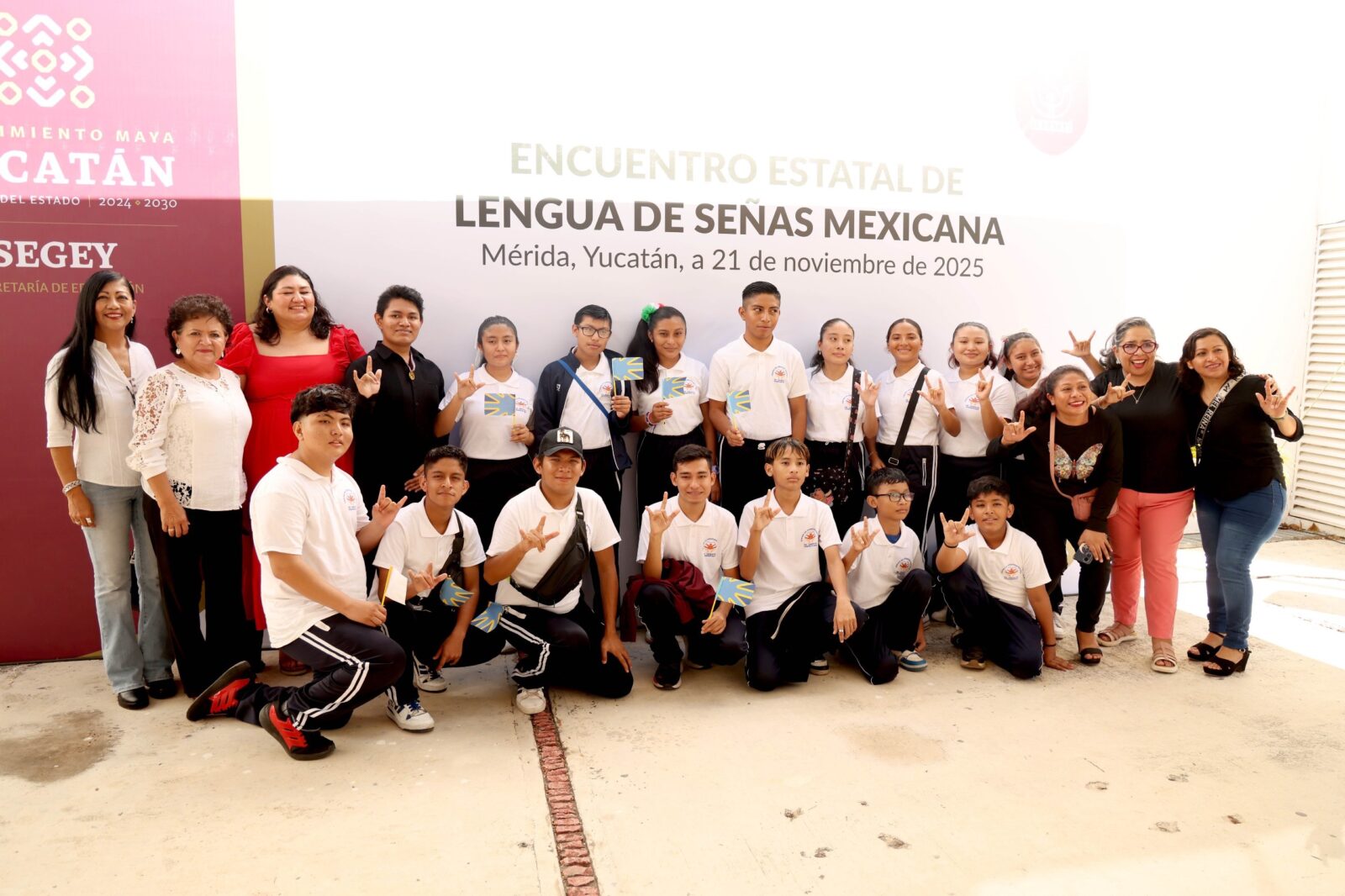 La Secretaría de Educación del Estado de Yucatán (Segey) realizó el Primer Encuentro Estatal de Lengua de Señas Mexicana (LSM), una jornada formativa y de convivencia que reunió a más de 120 estudiantes, docentes, especialistas y familias para fortalecer el aprendizaje, uso y reconocimiento de esta lengua como derecho lingüístico de las y los alumnos sordos.